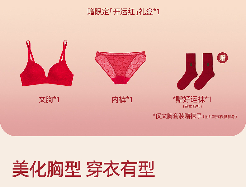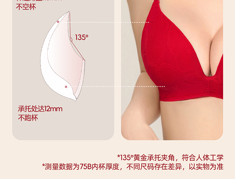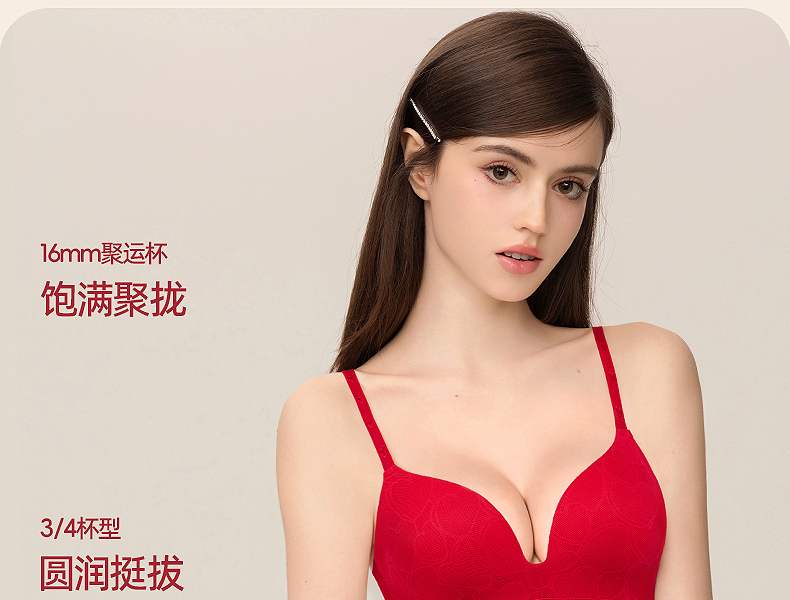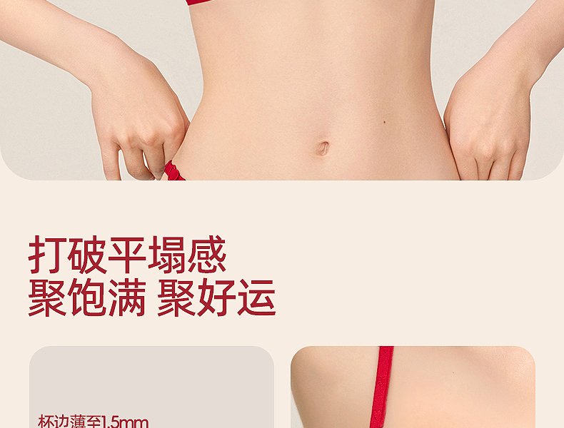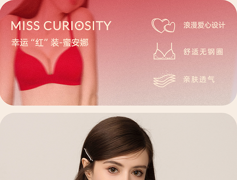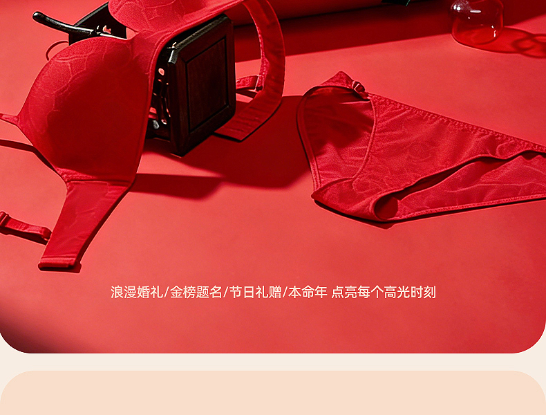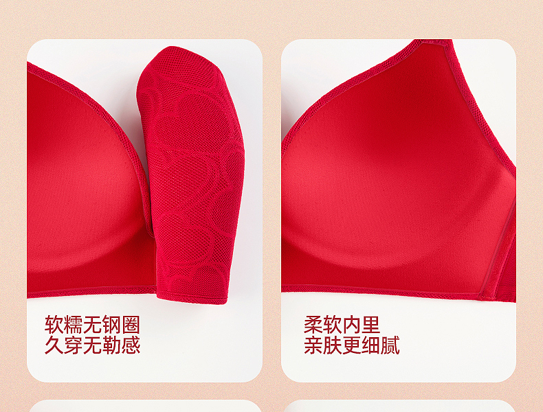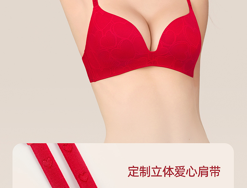 好奇蜜斯红色内衣女小胸聚拢显大无钢圈结婚本命年新娘文胸罩套装 蜜安娜