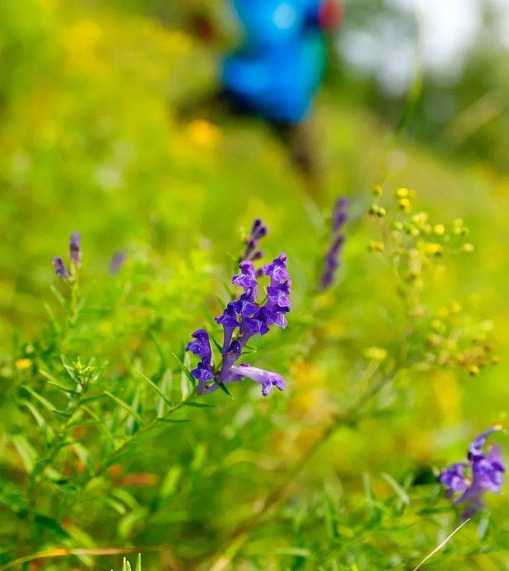 在大兴安岭,野生黄芩每年7月,8月开花成熟,这是森林最昌盛的时节,适合各种采摘。黄芩只长在光秃开阔的漫山坡,艳阳高照,一连串清洁的蓝紫色花聚拢成阵,但是这些陡峭的秃山,攀登起来需要大幅度倾斜腰身与脚面,每迈一步都要格外小心,脚要踩实,手还要牵住一把草,不然就会滑下山去。