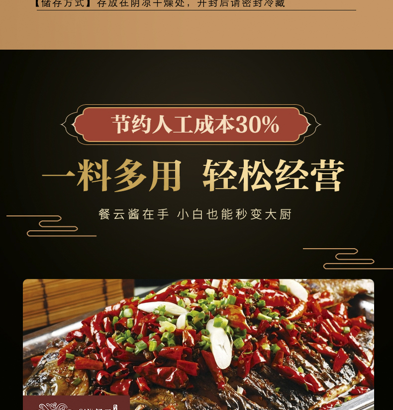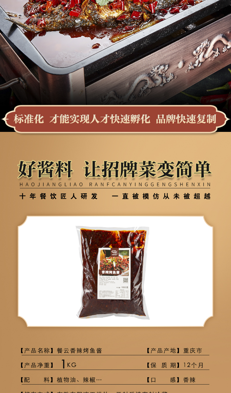 餐云香辣烤鱼酱 超过1000家烤鱼连锁餐饮选择高品质的配方 市面上的配方没法比 2斤装(一包做15份)