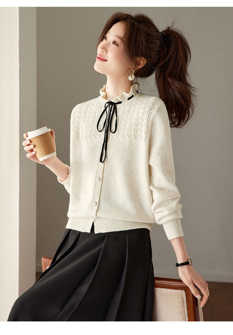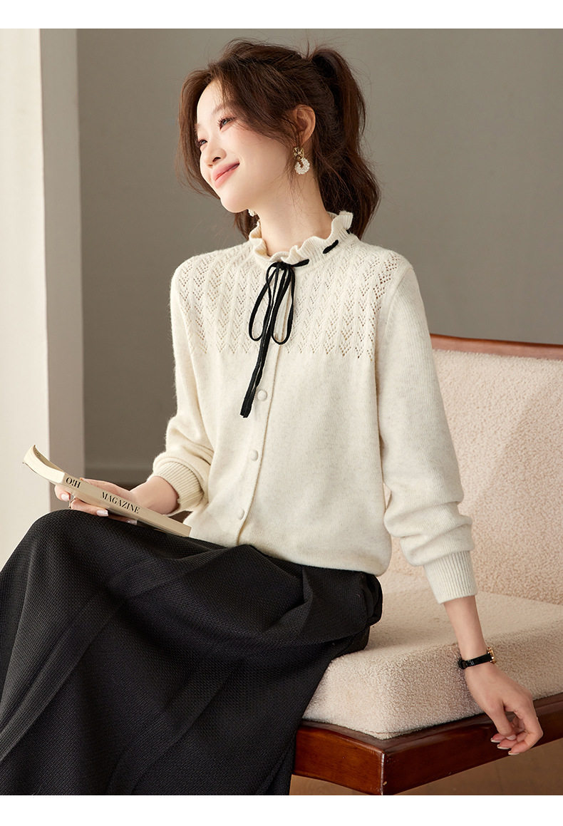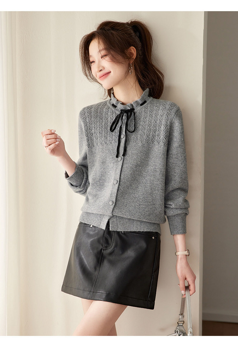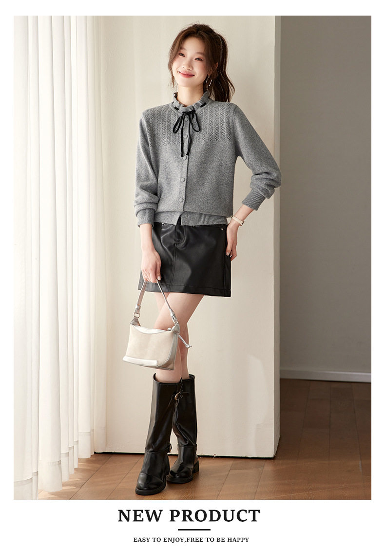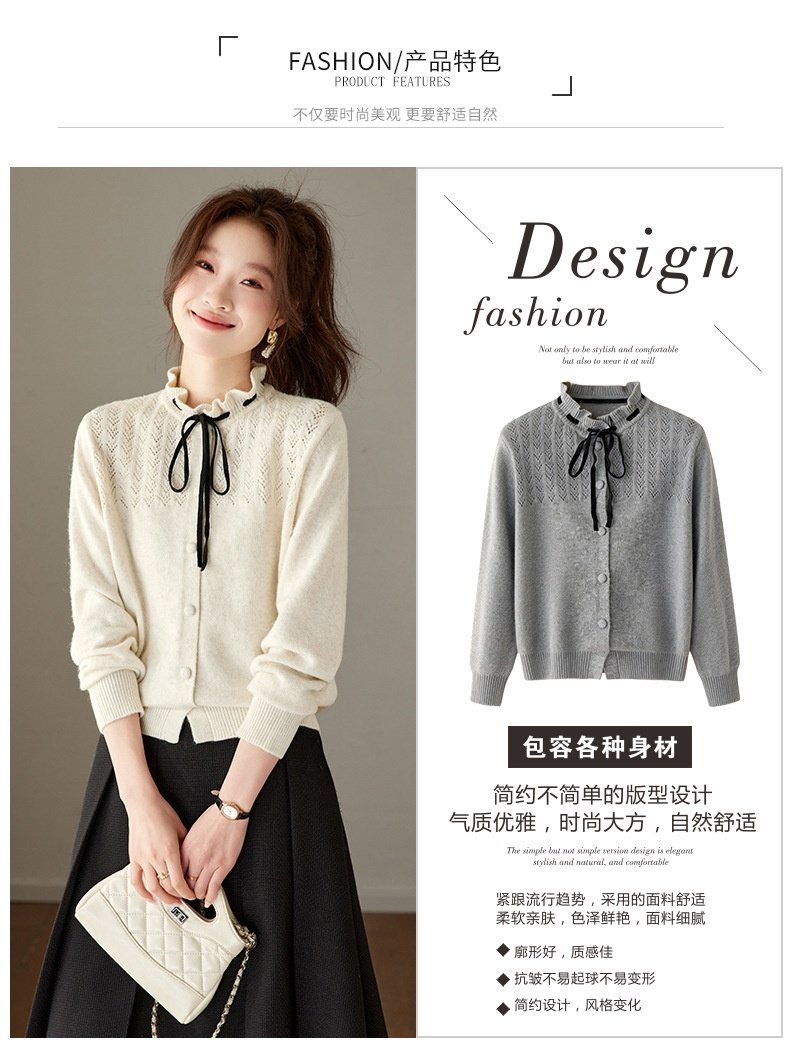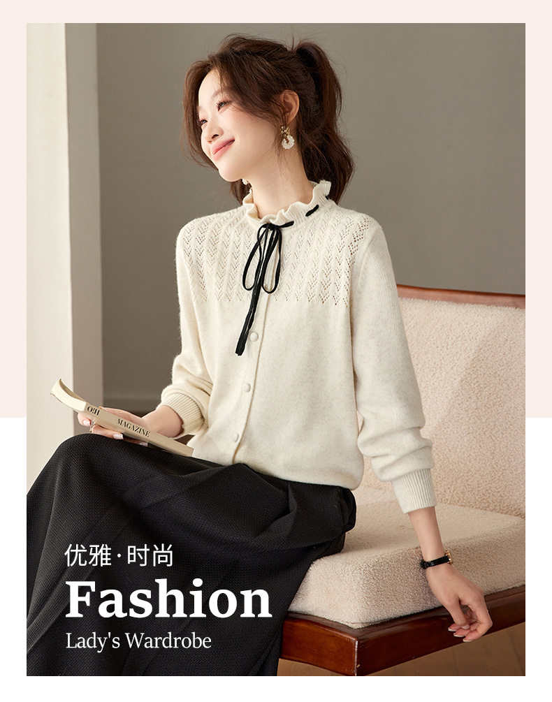 「自」全新升级【铂金会员183/天猫249/差价66】(35202)洛诗琳时尚设计感抽绳木耳边毛衣2026春季新款法式针织上衣女