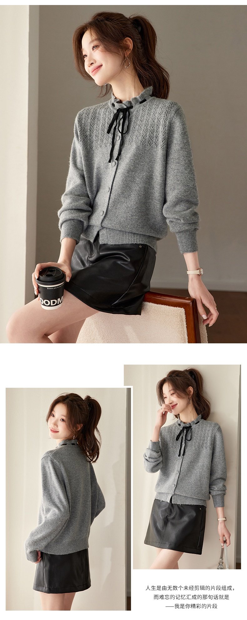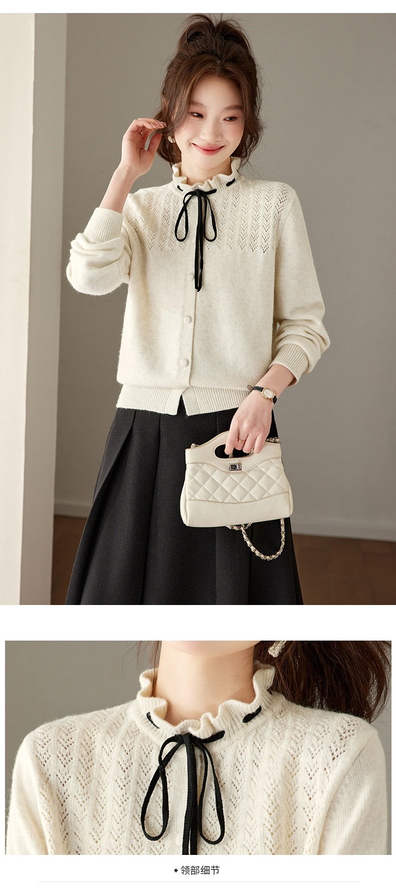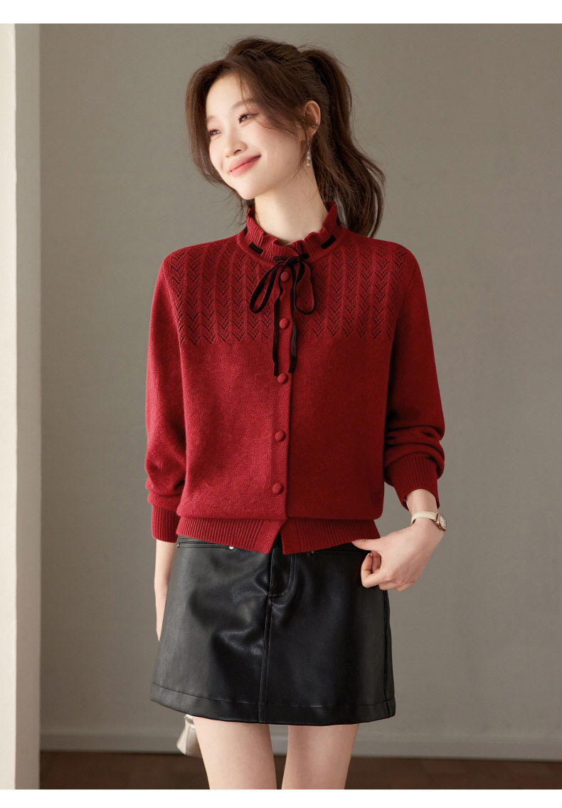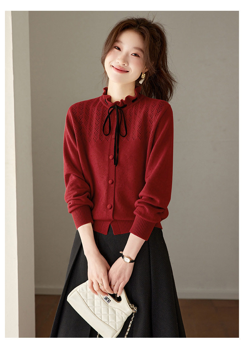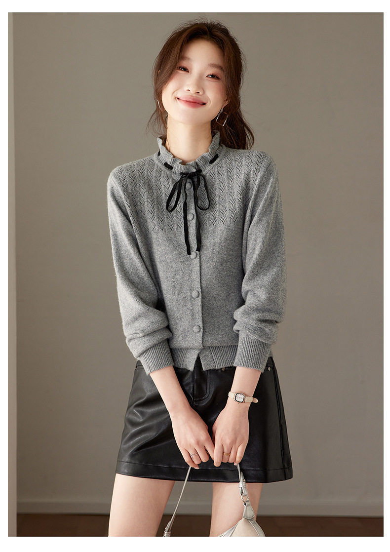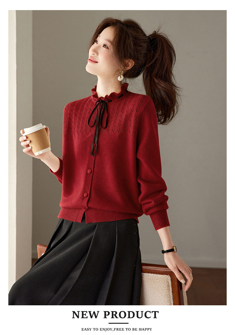 「自」全新升级【铂金会员183/天猫249/差价66】(35202)洛诗琳时尚设计感抽绳木耳边毛衣2026春季新款法式针织上衣女