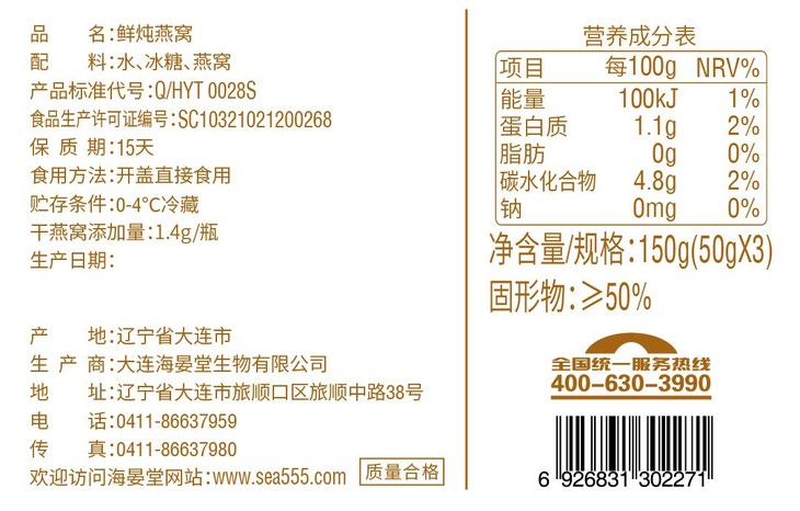 鲜炖燕窝 50g*6瓶 一组 海晏堂 JAO颜鲜炖燕窝 现炖即食燕窝 当日鲜炖 免费配送 【6瓶一起发货,不分开发货】