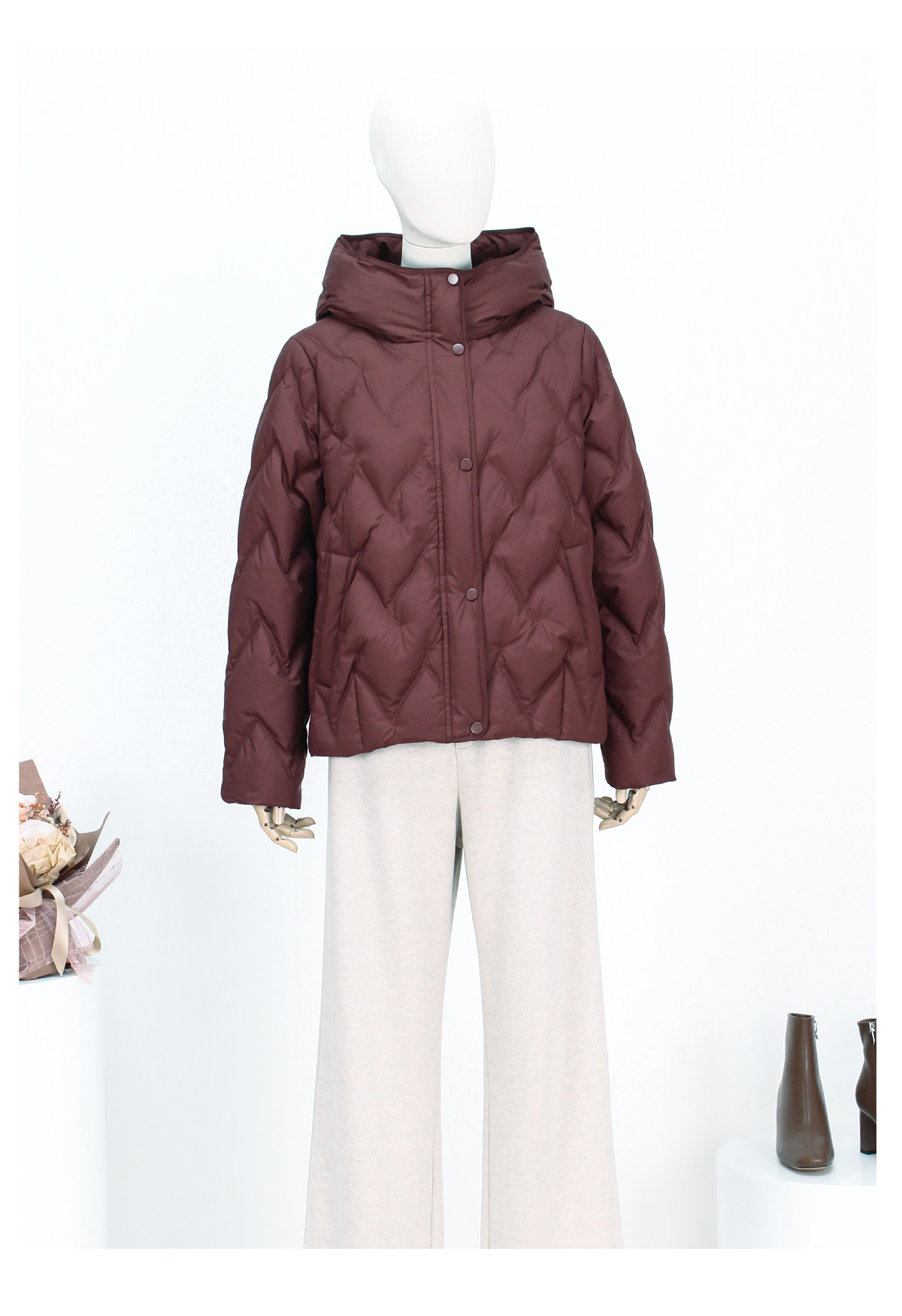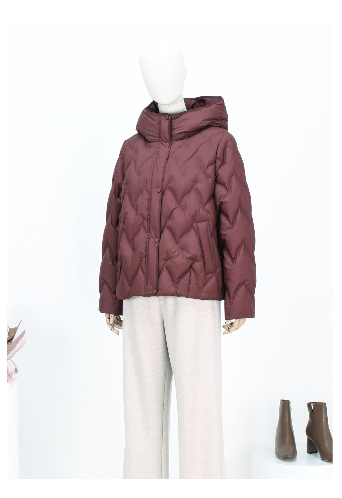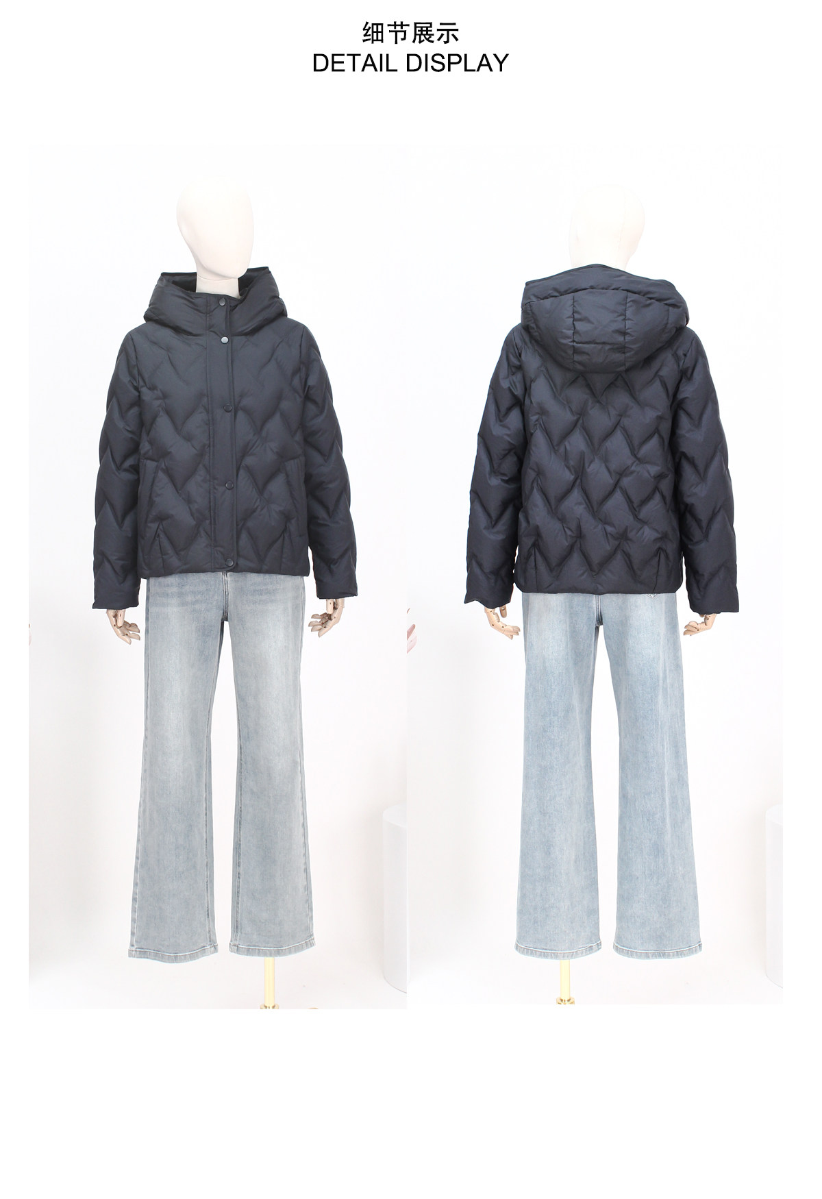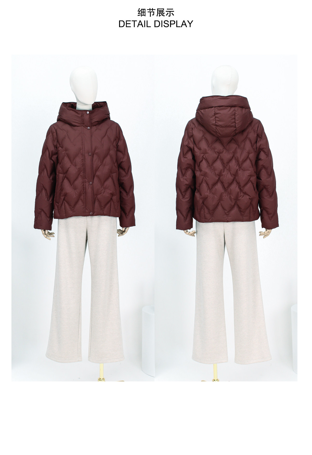 FOCALS新款时尚休闲绗缝连帽白鸭绒短款羽绒服外套FRW8D070