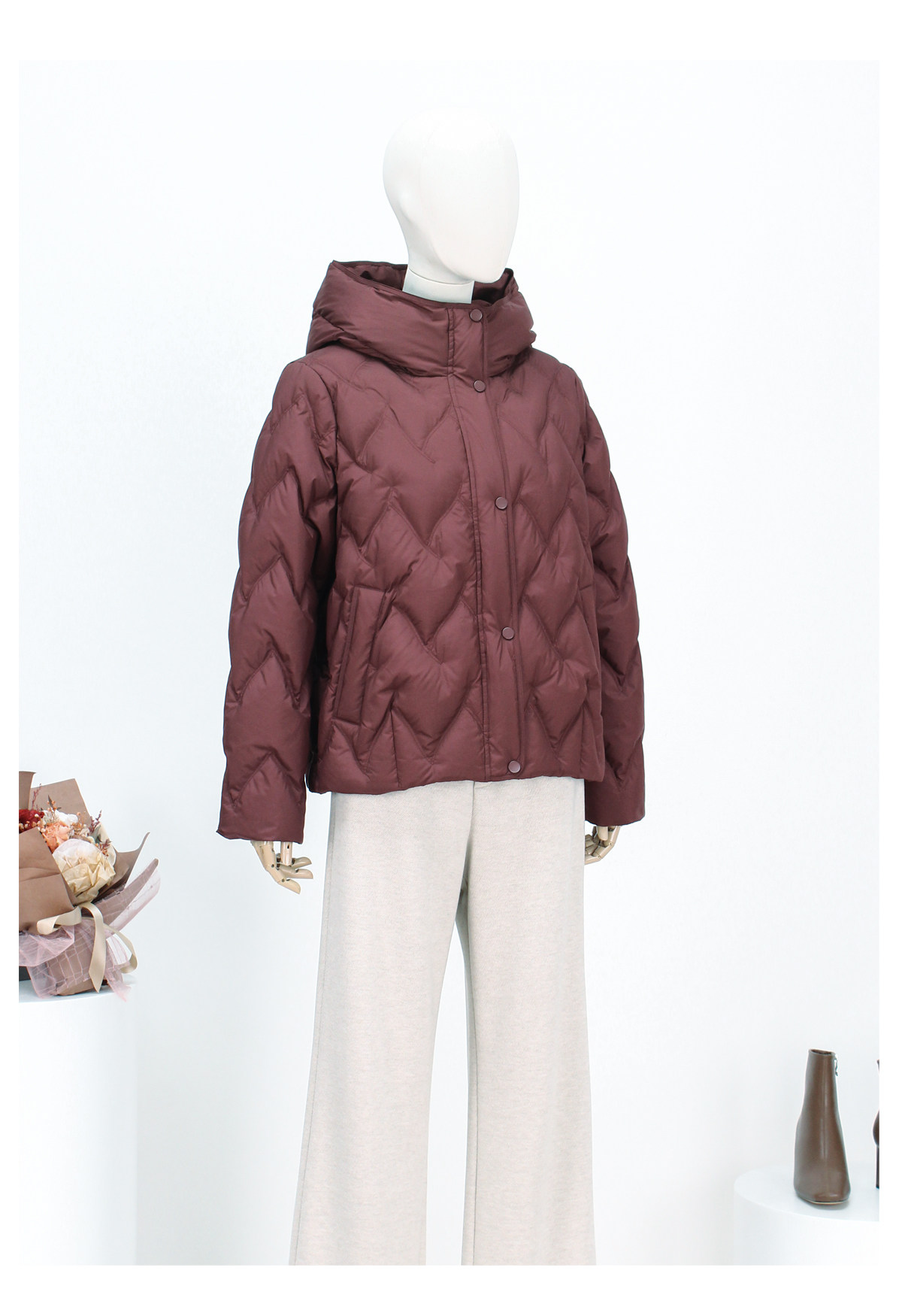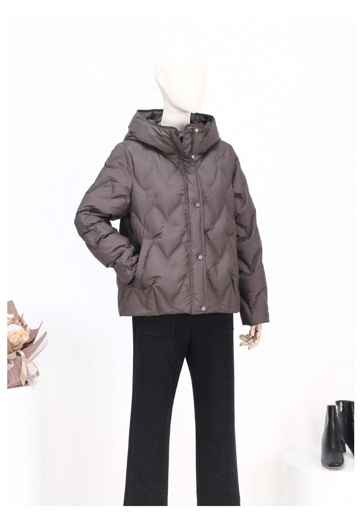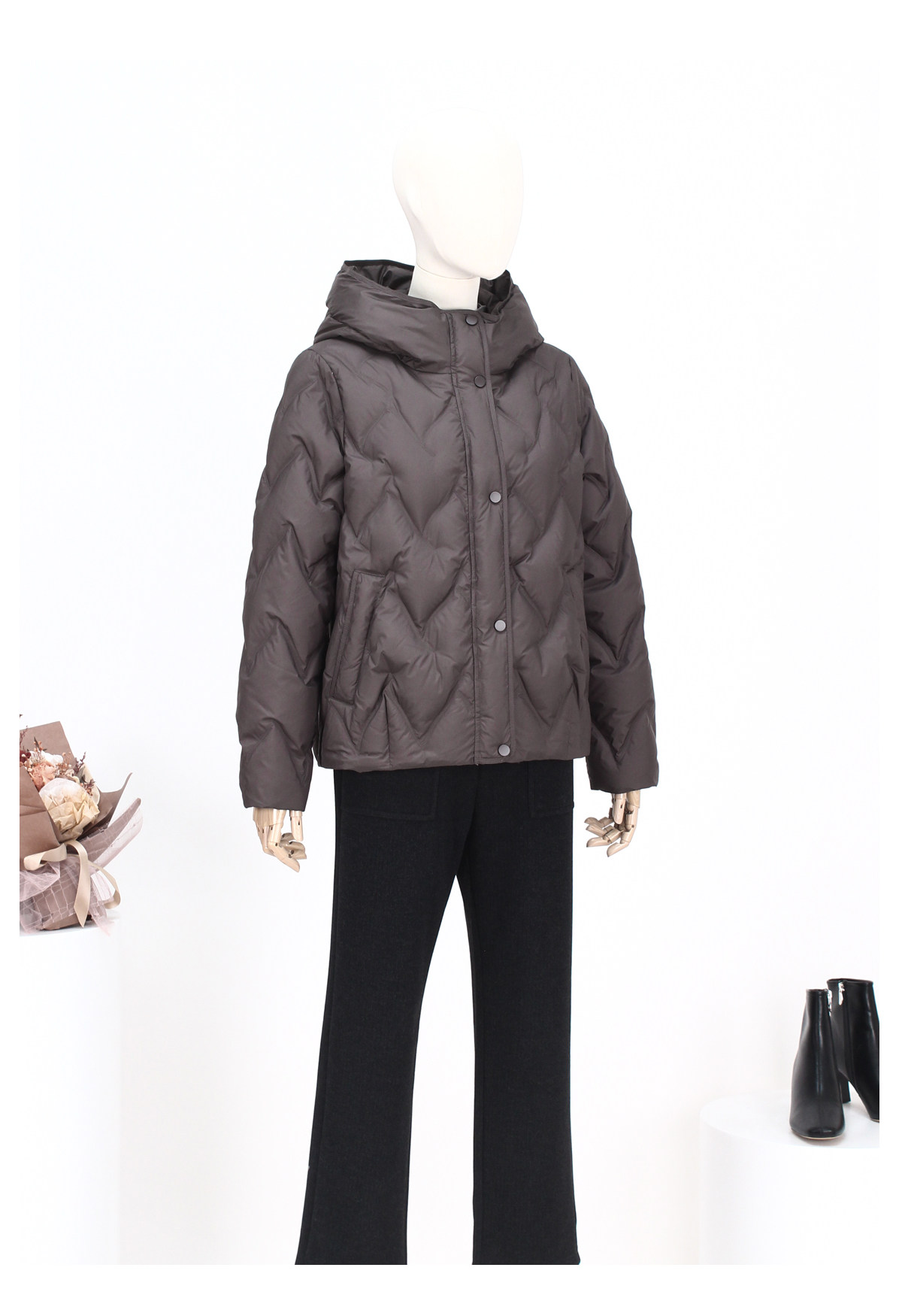FOCALS新款时尚休闲绗缝连帽白鸭绒短款羽绒服外套FRW8D070