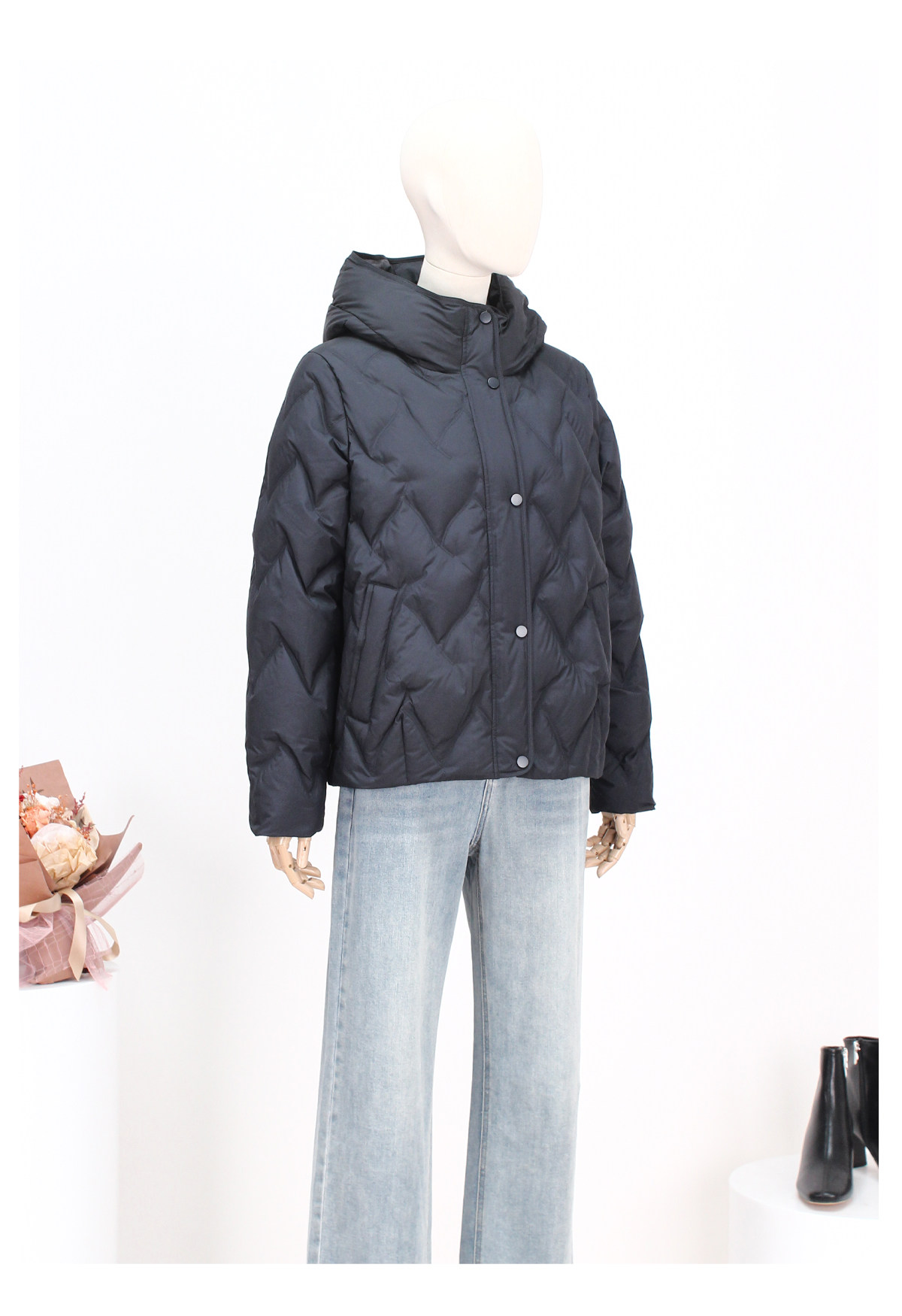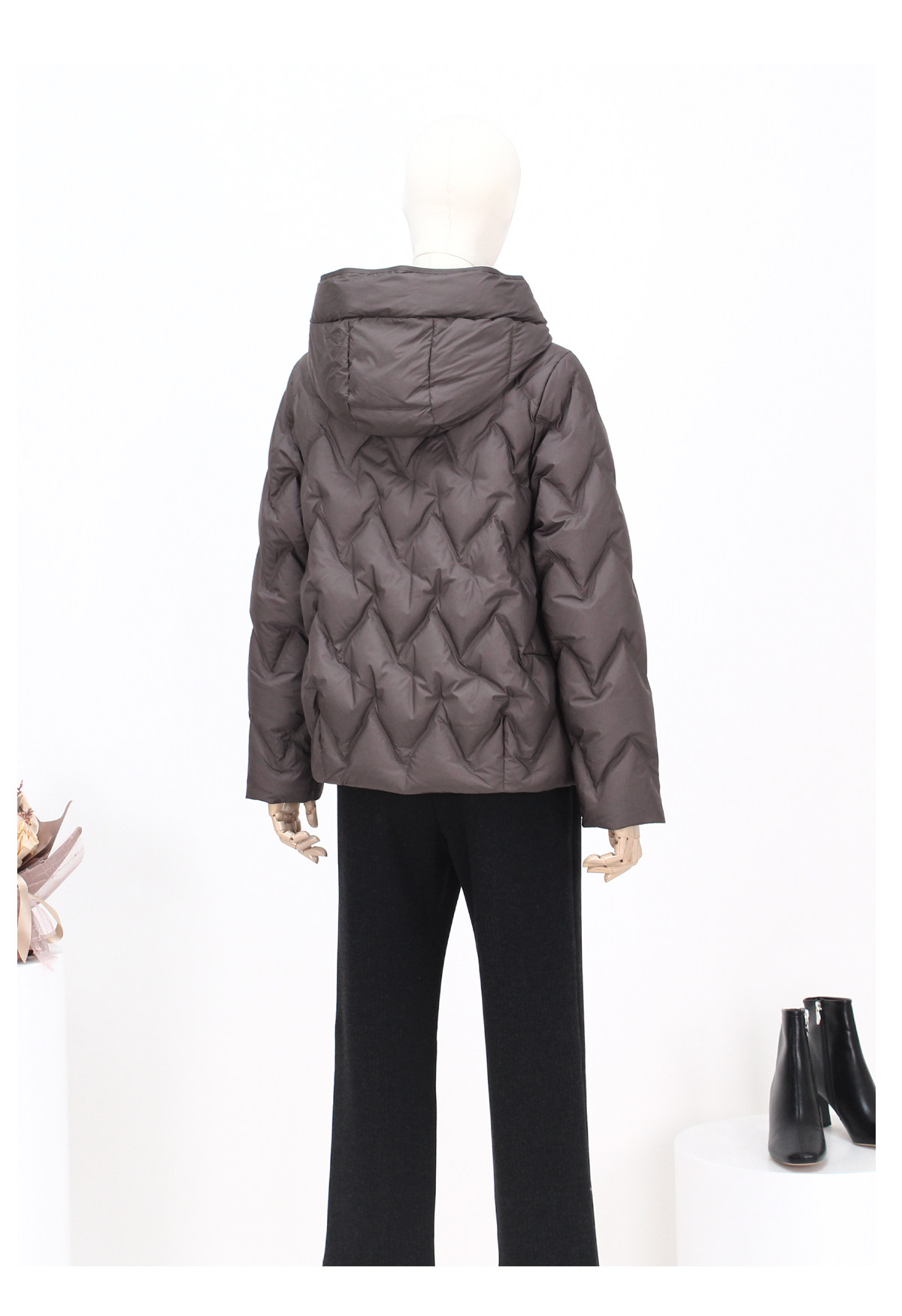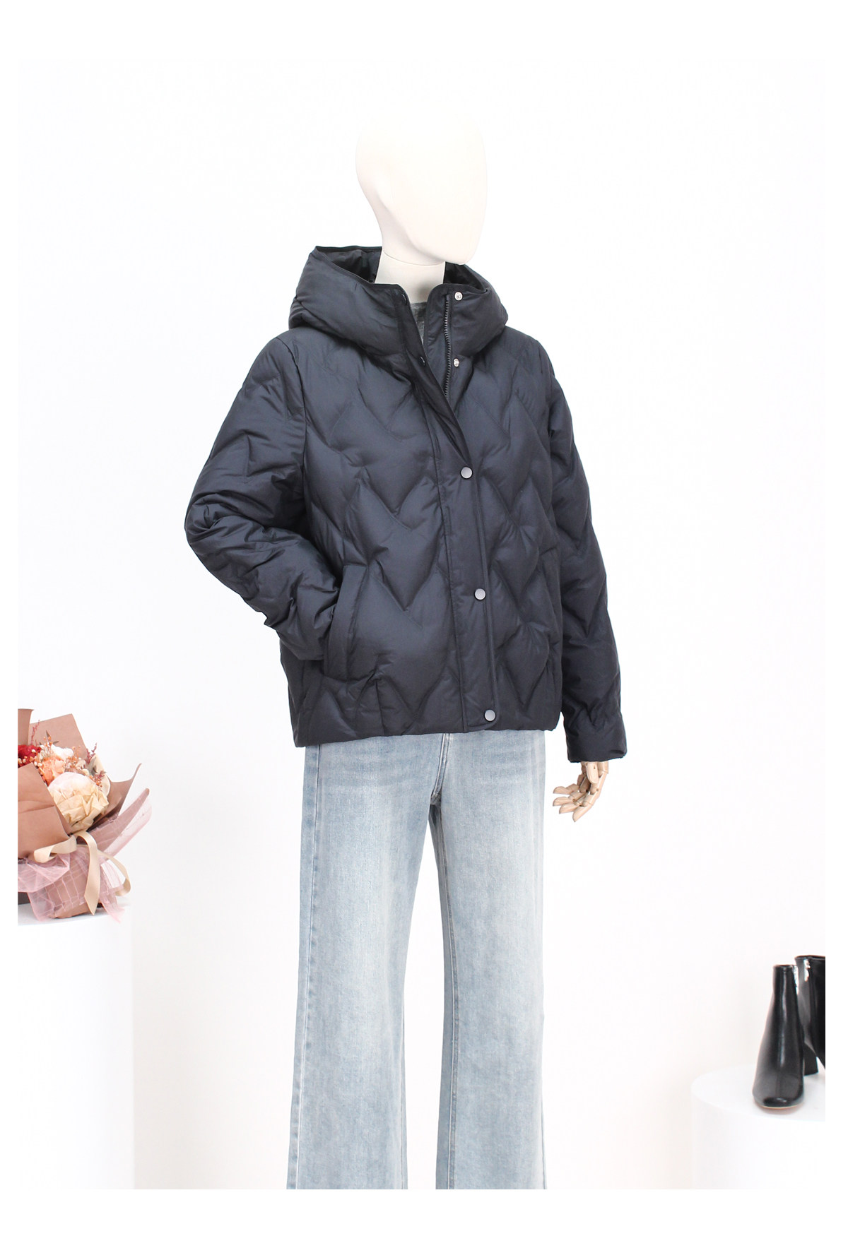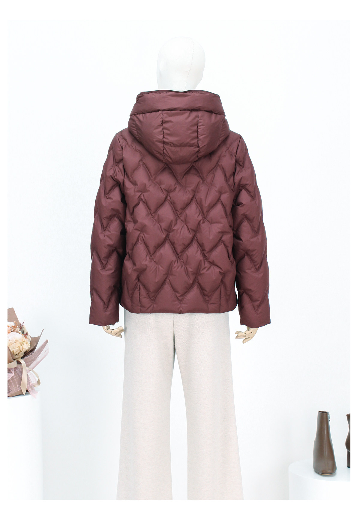 FOCALS新款时尚休闲绗缝连帽白鸭绒短款羽绒服外套FRW8D070
