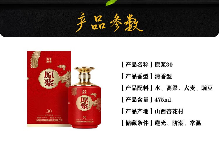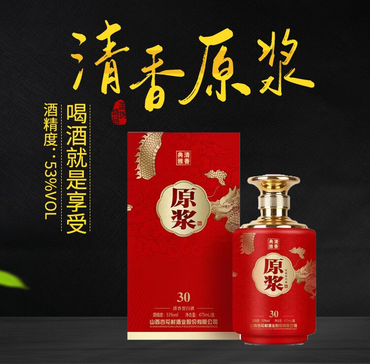山西杏花村杜牧53度原浆30清香型白酒475ml/瓶 2瓶送手提袋 整箱6瓶