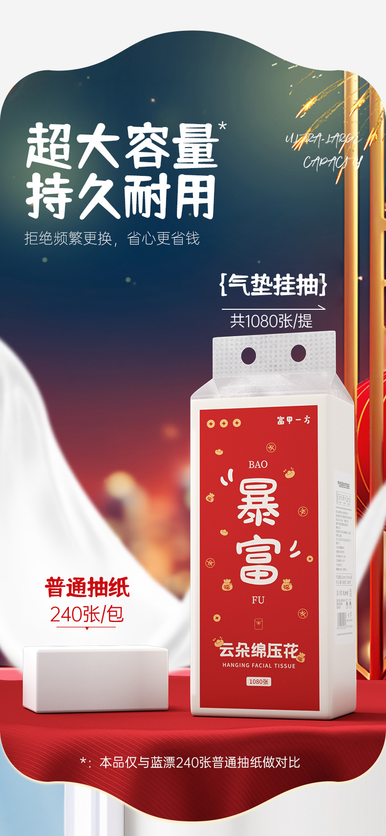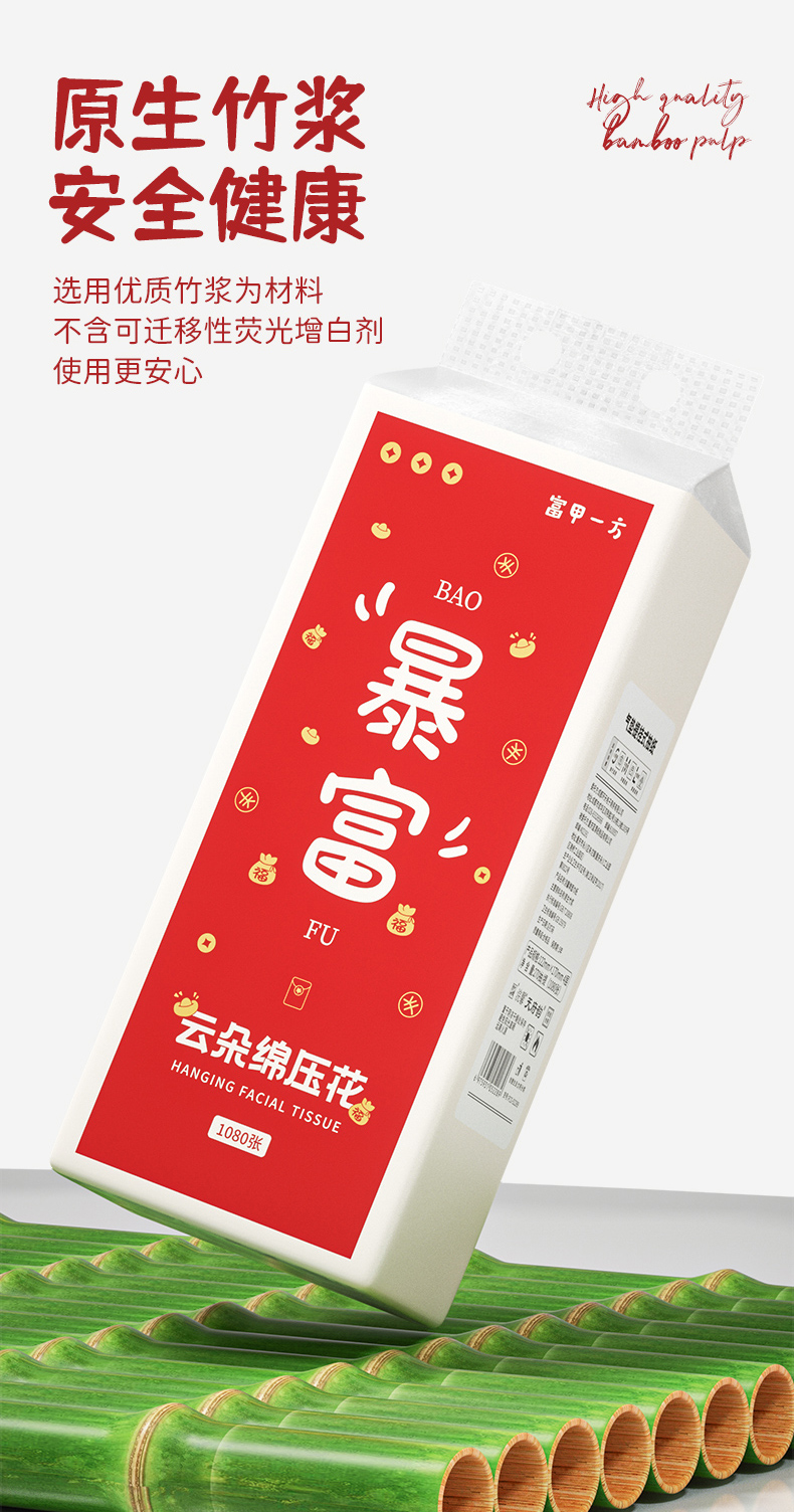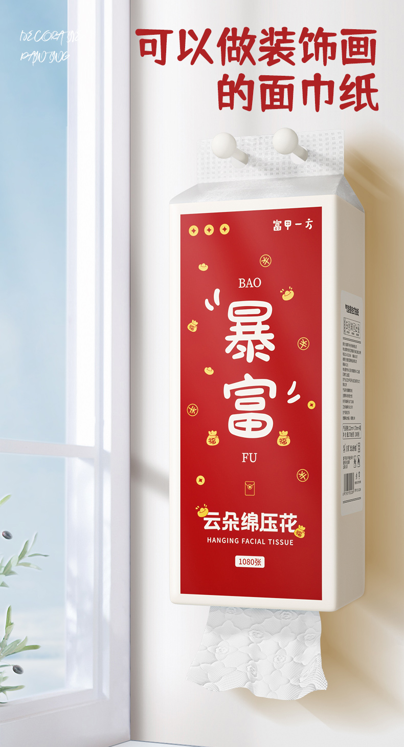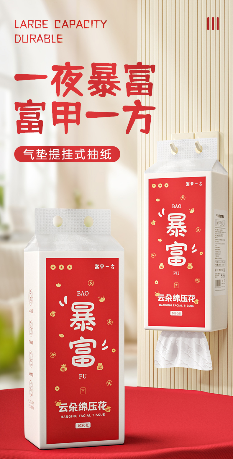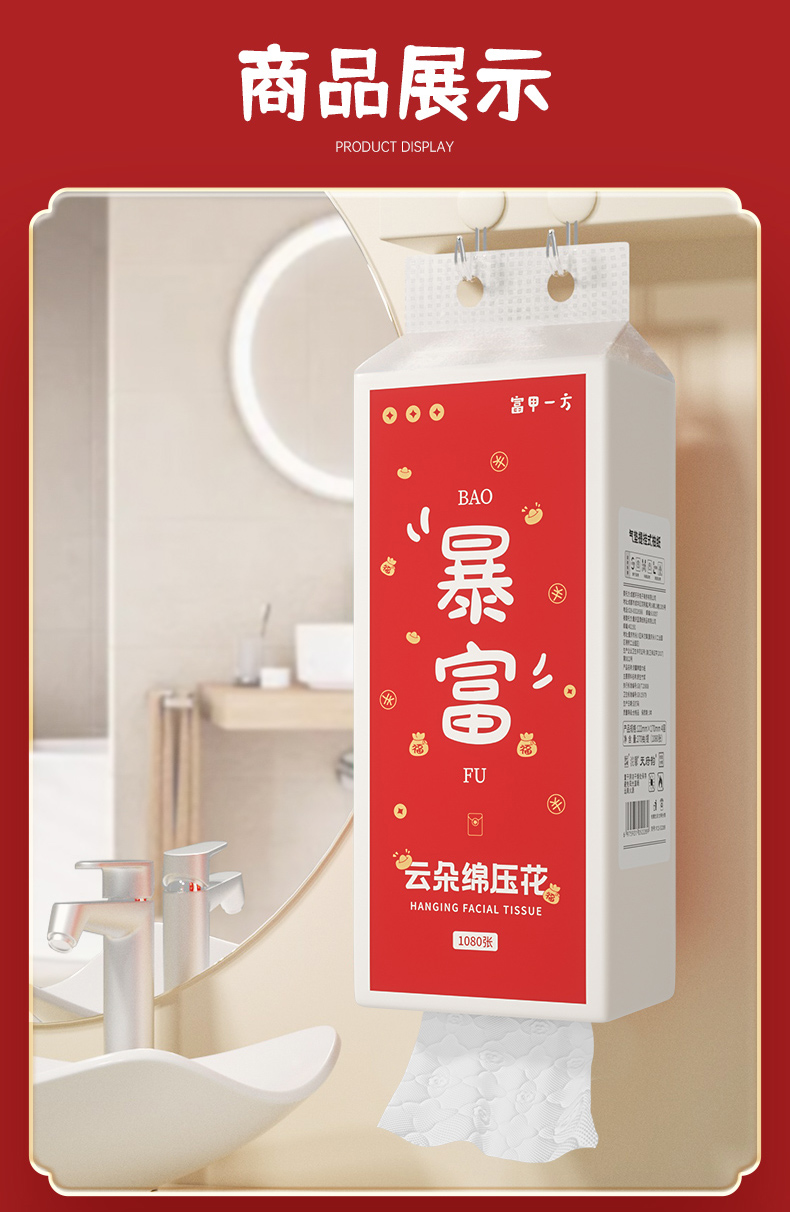 【自营】蓝漂浣馨系列大号悬挂式纸巾抽纸底部挂抽纸卫生纸擦手纸1提 FCS-52289