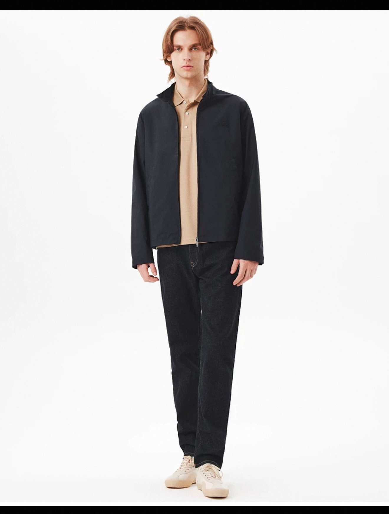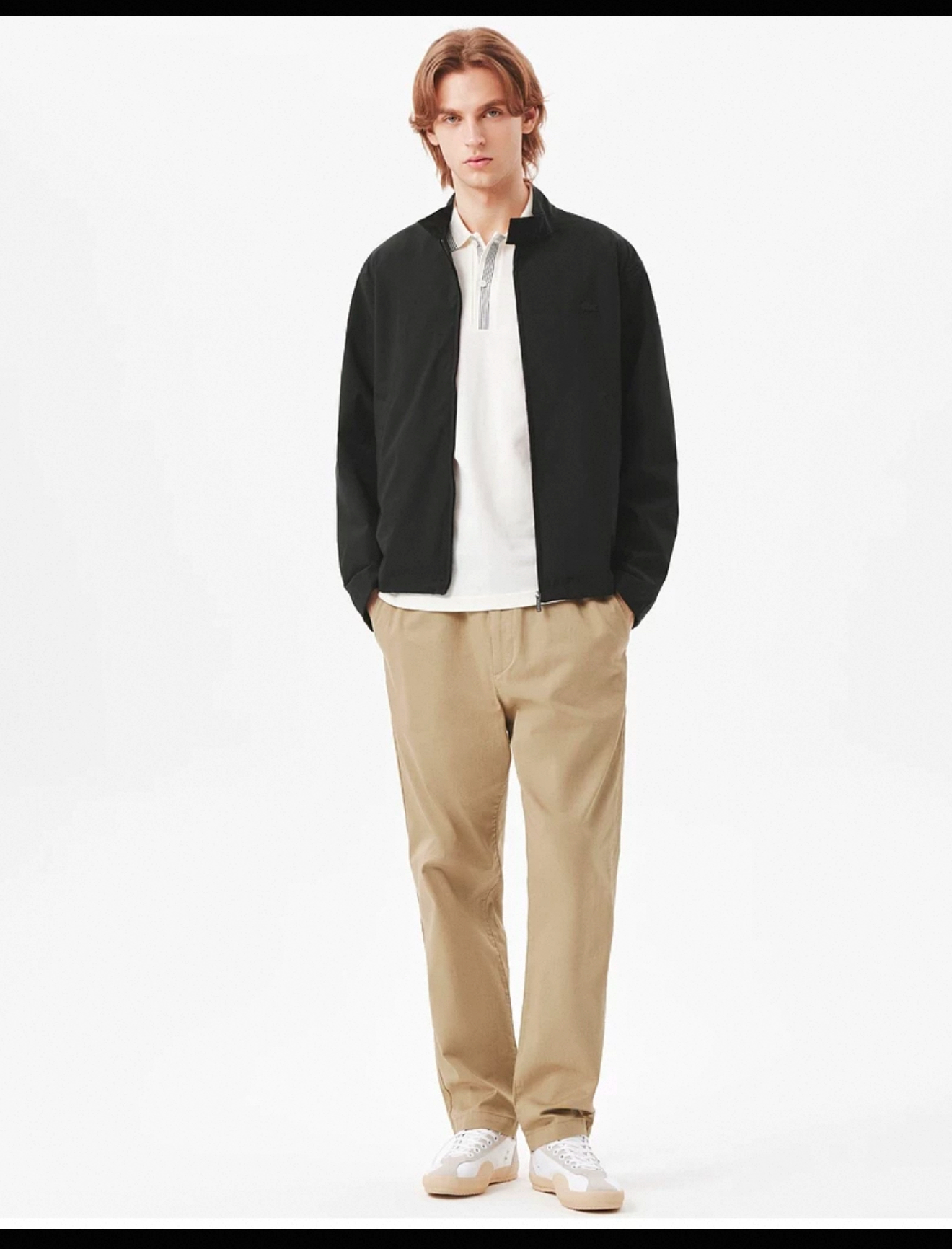 微宽松上身挺括有型,胸口同色系小标刺绣简约低调
