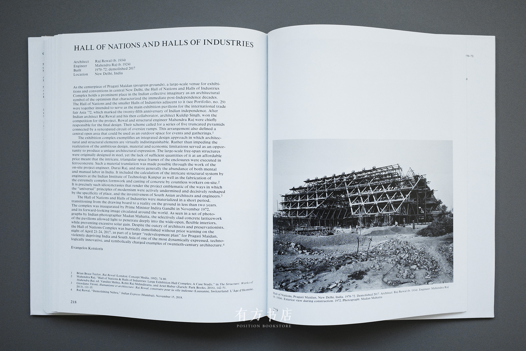 以建筑摄影师Randhir Singh新拍摄的实景摄影为基础,这本插图丰富、研究细致的图录,亦包含了策展人和该领域主要学者的文章,主题包括混凝土政治、机构建设、高等教育、住房、基础设施和工业、景观和设计,以及来自南亚次大陆各地的17个变革性项目的展示。