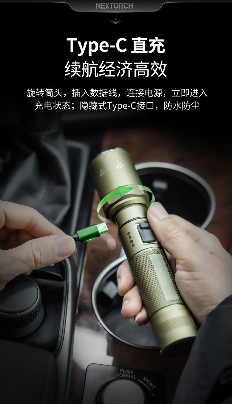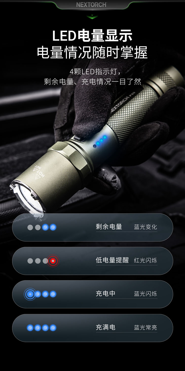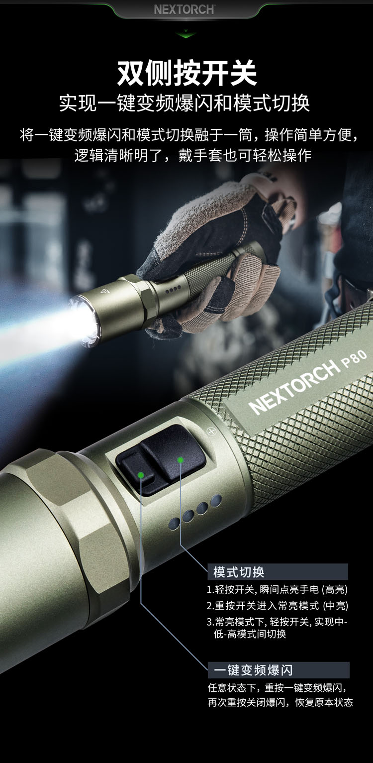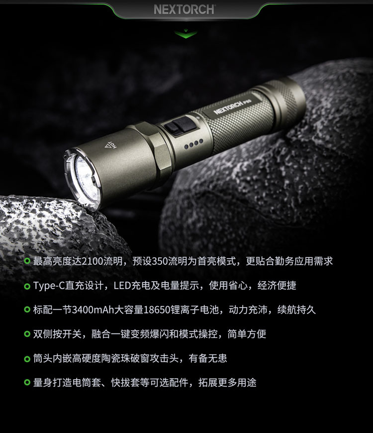 纳丽德(新品上市)P80橄榄绿迷彩色·2100流明3400mAh电池升级版户外强光勤务手电筒