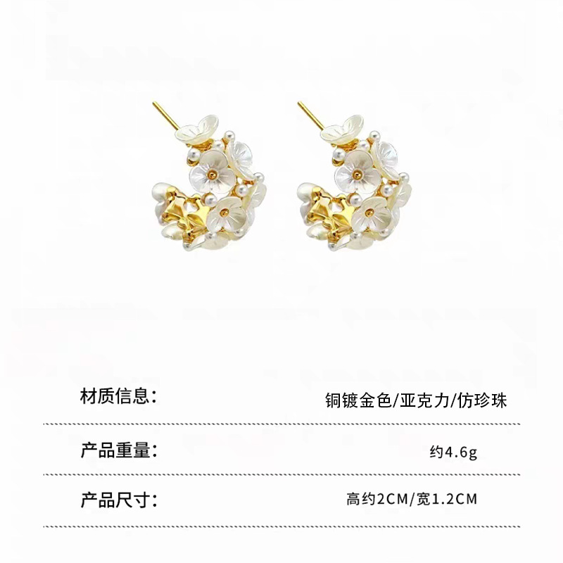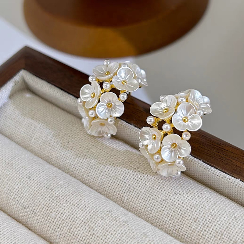 JU-HD-0013白色花朵珍珠耳环女2025新款气质高级感耳钉法式简约时尚精致耳饰