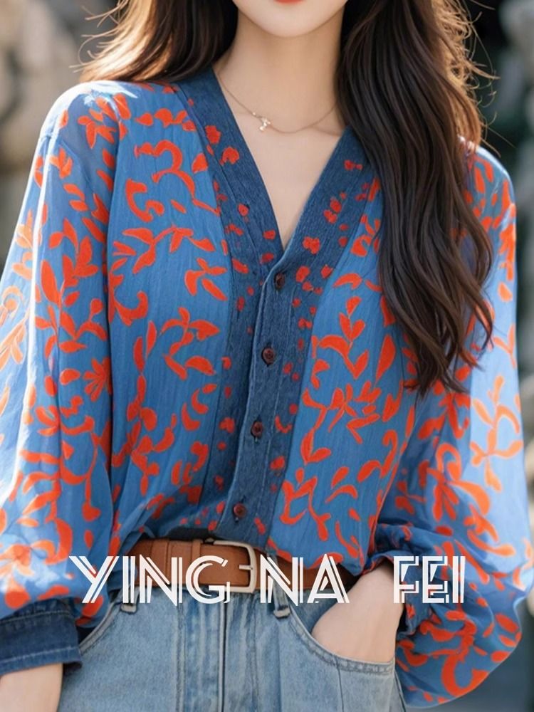 丁摩 洋气蓝色印花v领长袖衬衫女装春秋新款独特韩系别致上衣5ZF- 9370 商品缩略图0 丁摩 洋气蓝色印花v领长袖衬衫女装春秋新款独特韩系别致上衣5ZF- 9370 商品缩略图1 丁摩 洋气蓝色印花v领长袖衬衫女装春秋新款独特韩系别致上衣5ZF- 9370 商品缩略图2 丁摩 洋气蓝色印花v领长袖衬衫女装春秋新款独特韩系别致上衣5ZF- 9370 商品缩略图3 丁摩 洋气蓝色印花v领长袖衬衫女装春秋新款独特韩系别致上衣5ZF- 9370 商品缩略图4