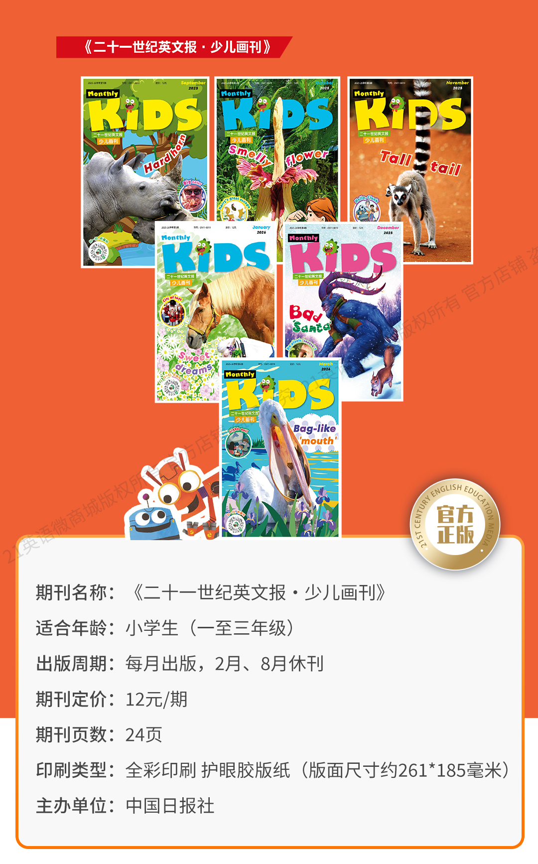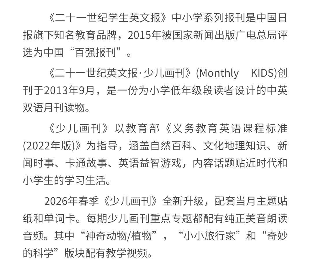 【全年月投】 | 《二十一世纪英文报》少儿画刊 1-3年级(2026年4月-2027年3月) 全年预订 寒暑假休刊