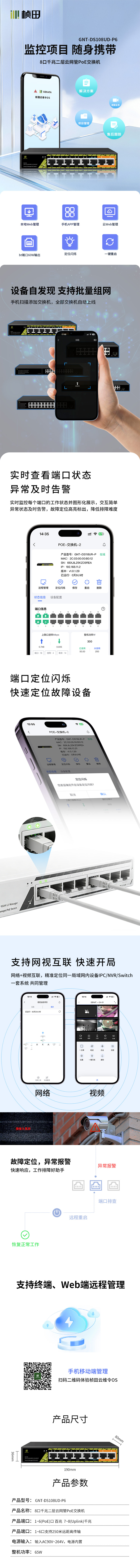 8口千兆二层云管网视互联PoE交换机(5EP+EP6+2G/65W)-GNT-DS108UD-P6