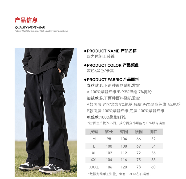 回力工装裤子男2025秋冬款加绒宽松休闲户外机能冲锋直筒加厚长裤