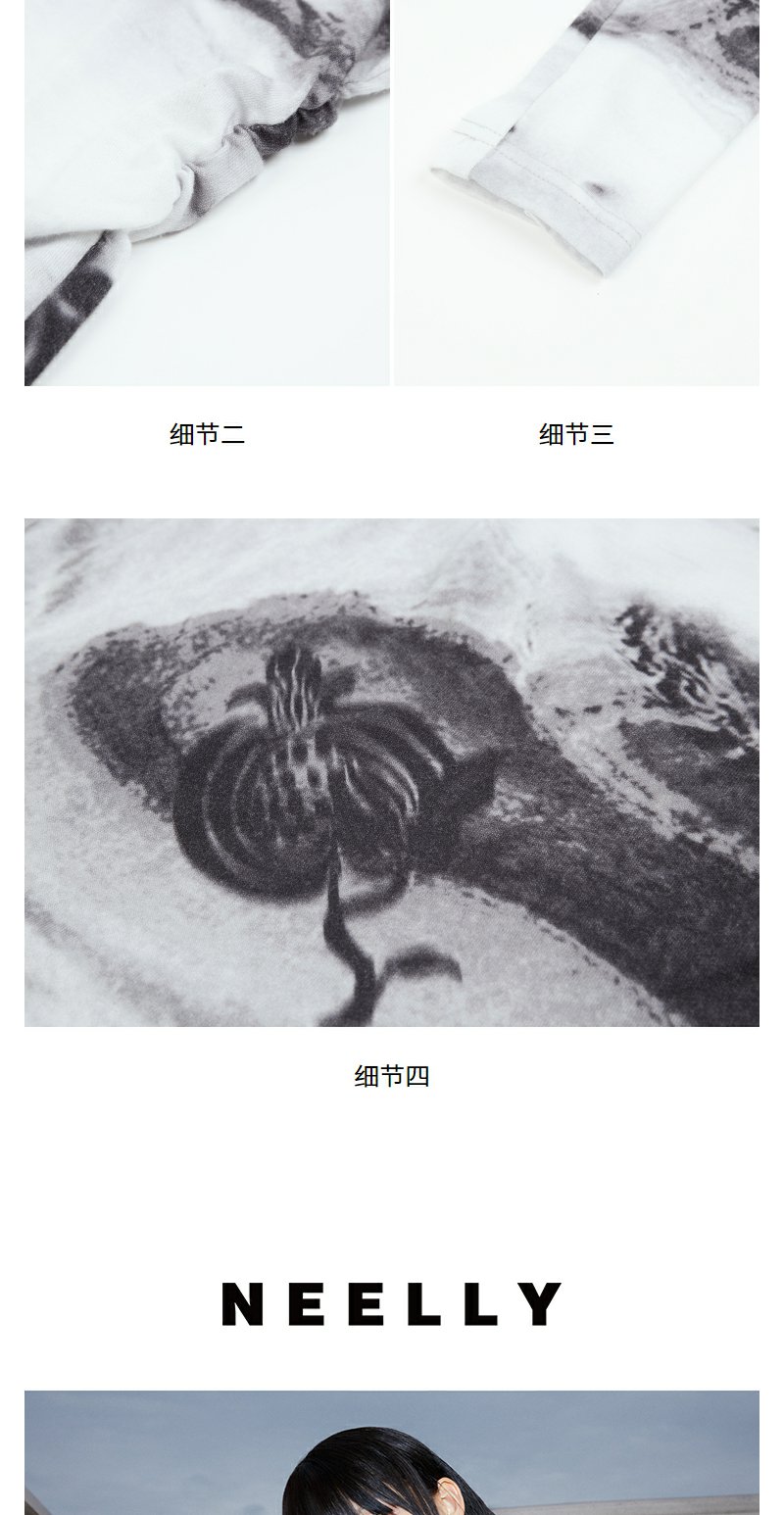 NEELLY纳俪2024秋商场同款设计感印花修身长袖T恤女新款显瘦内搭N24083T01131