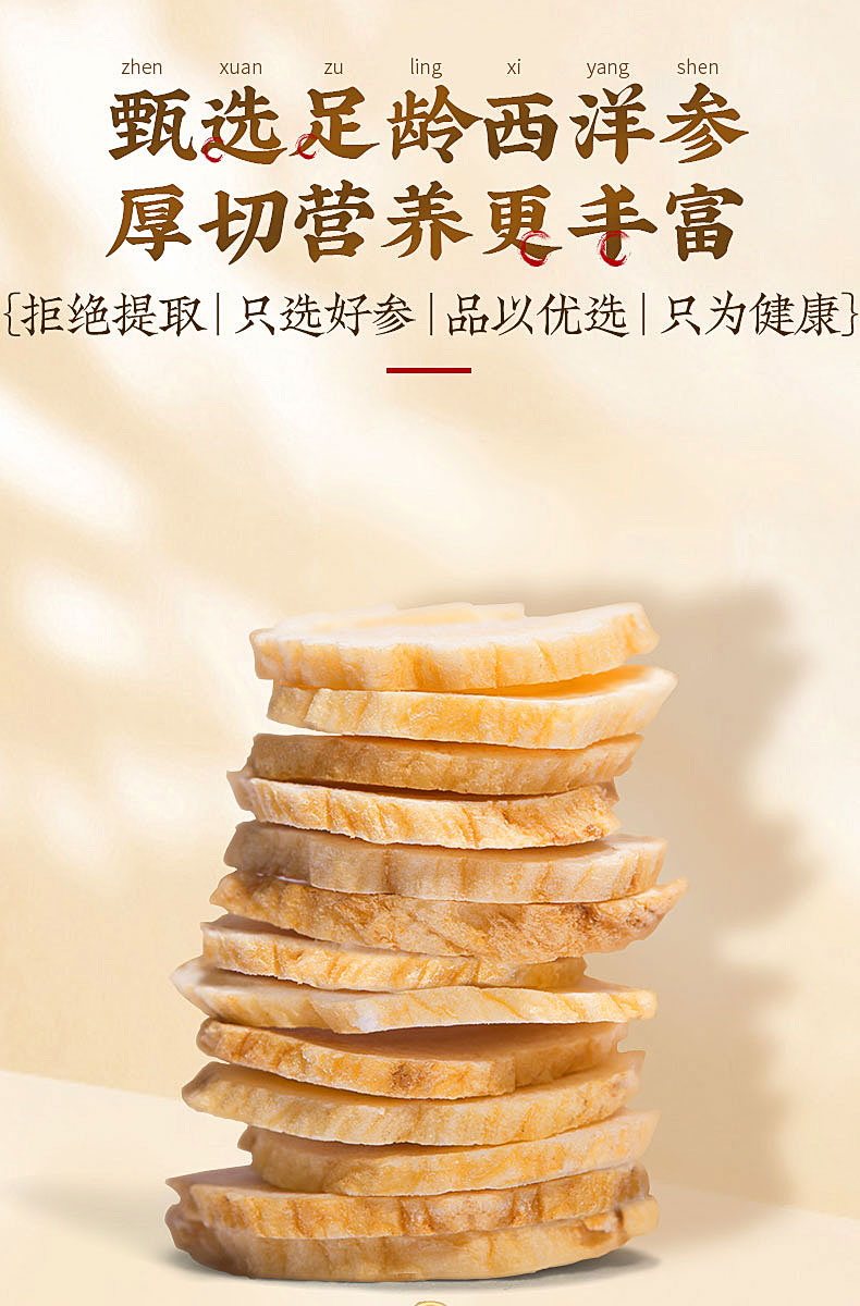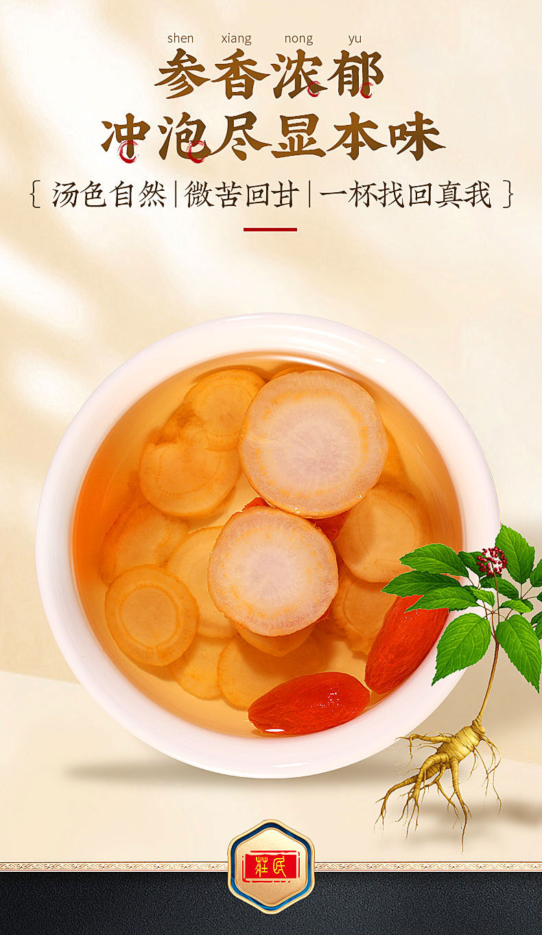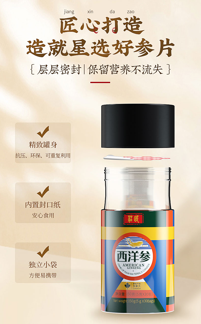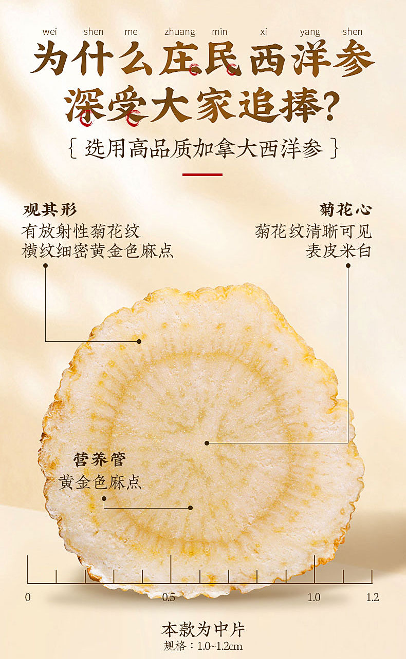庄民 西洋参 花旗参含片泡茶 西洋参切片加拿大进口原料1.0-1.2cm中片5g*30包可磨西洋参粉