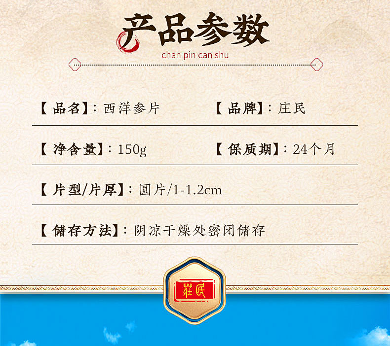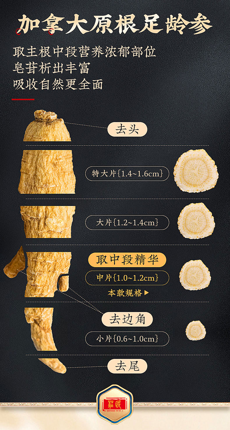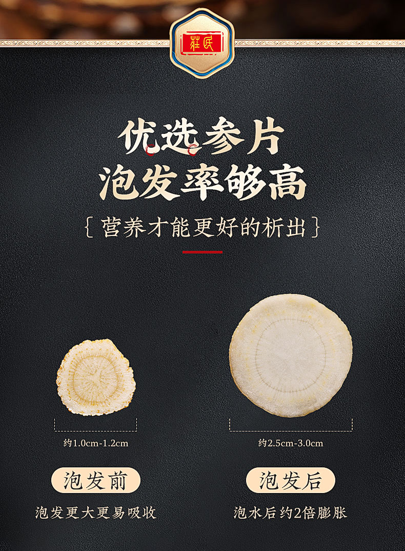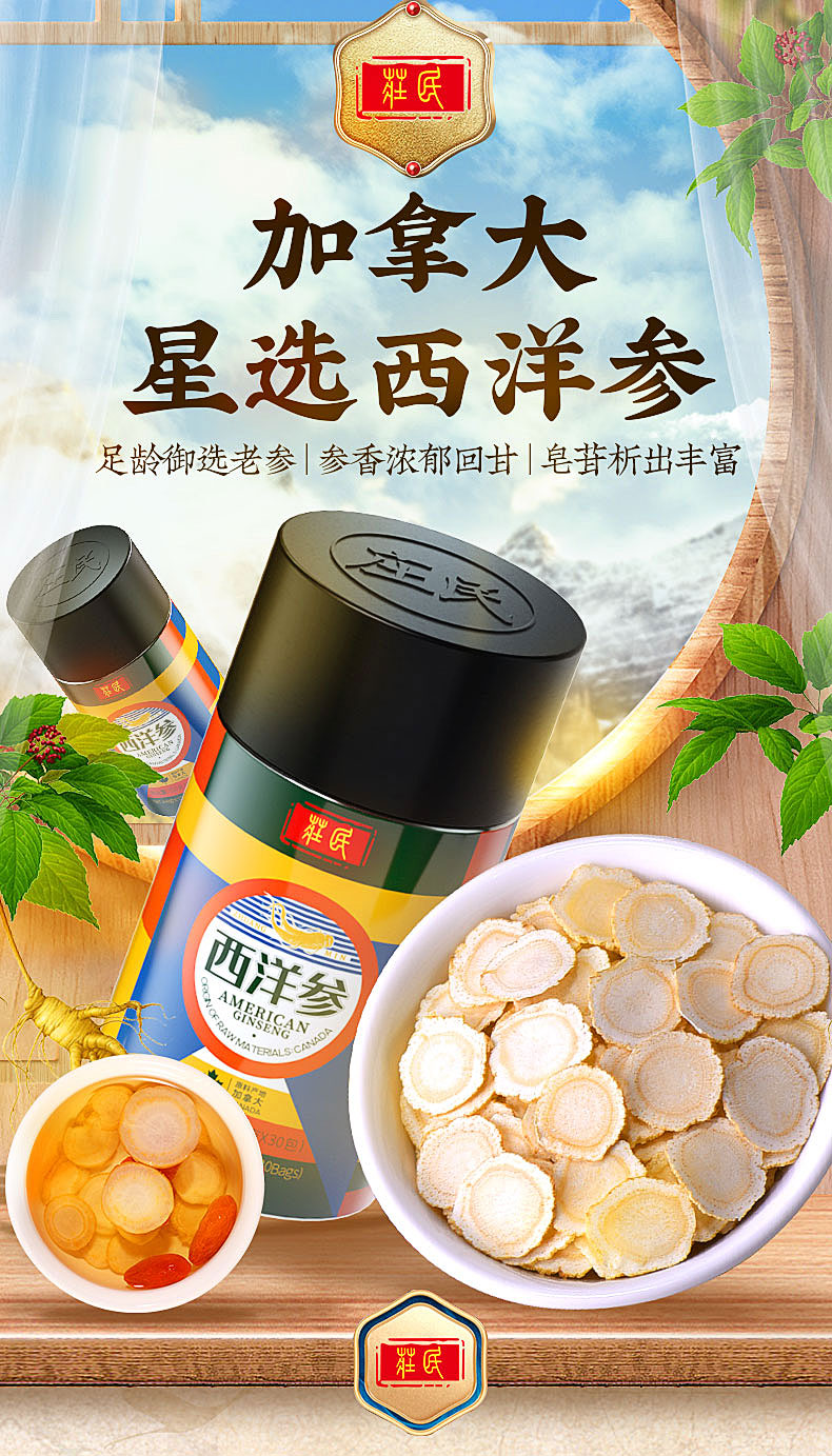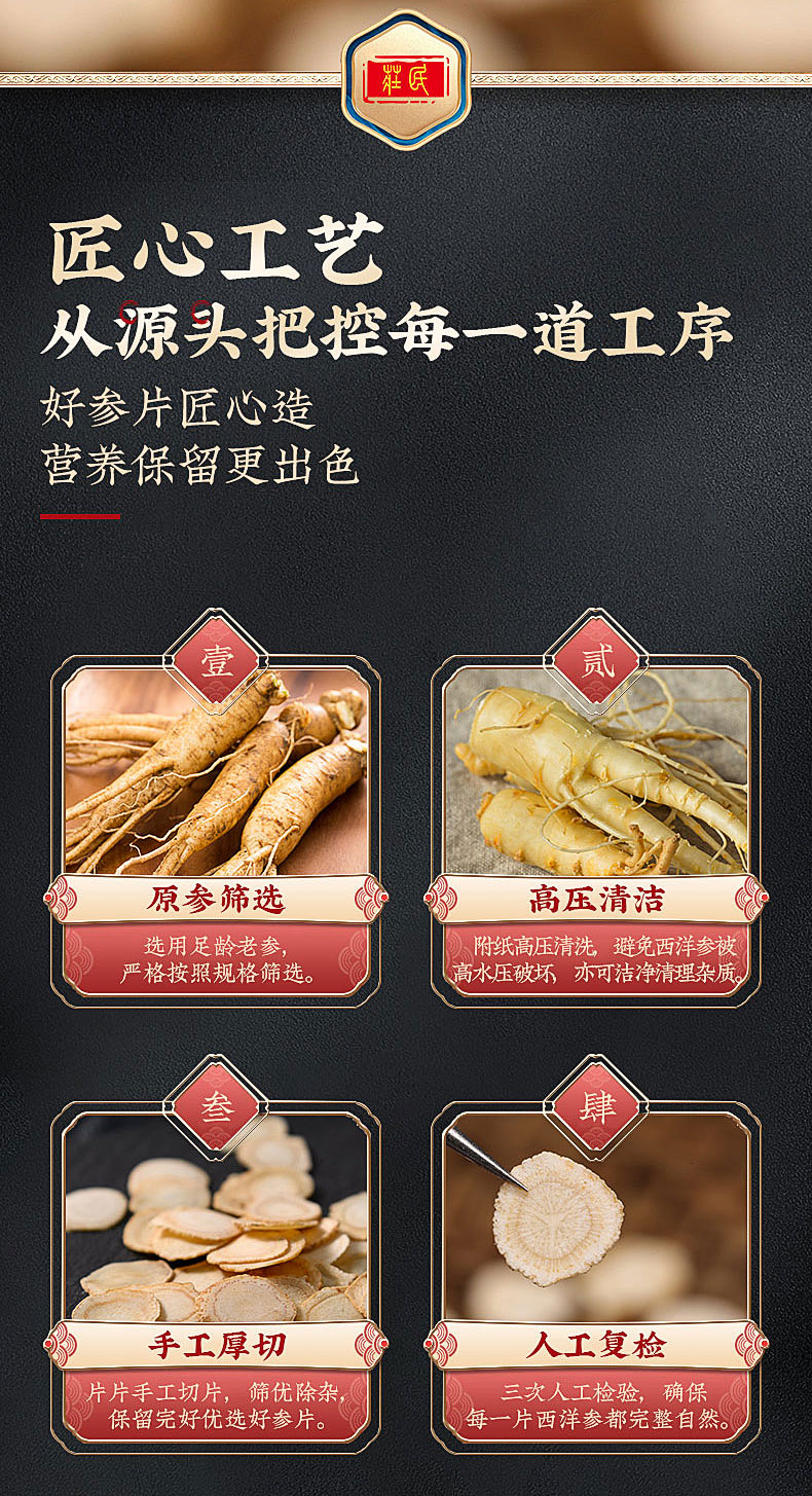 庄民 西洋参 花旗参含片泡茶 西洋参切片加拿大进口原料1.0-1.2cm中片5g*30包可磨西洋参粉