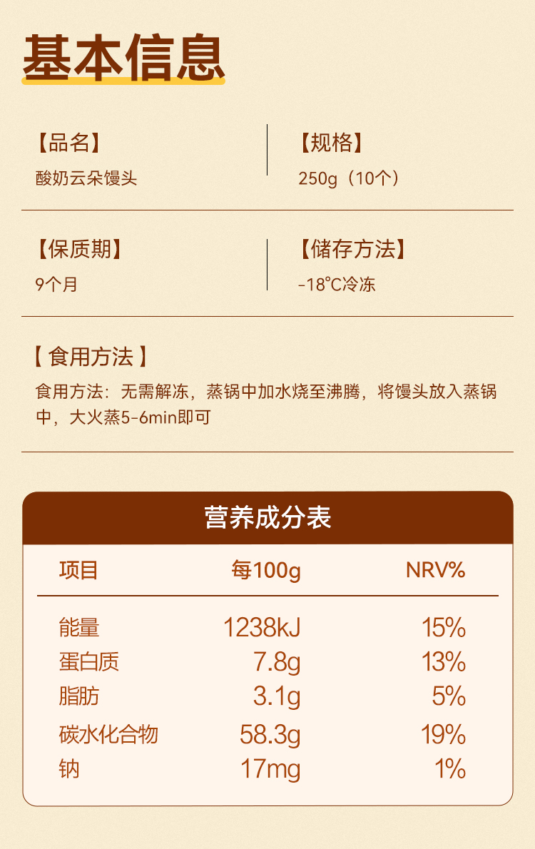 酸奶云朵馒头250g/袋 方便早餐加热即食10个装【社群】