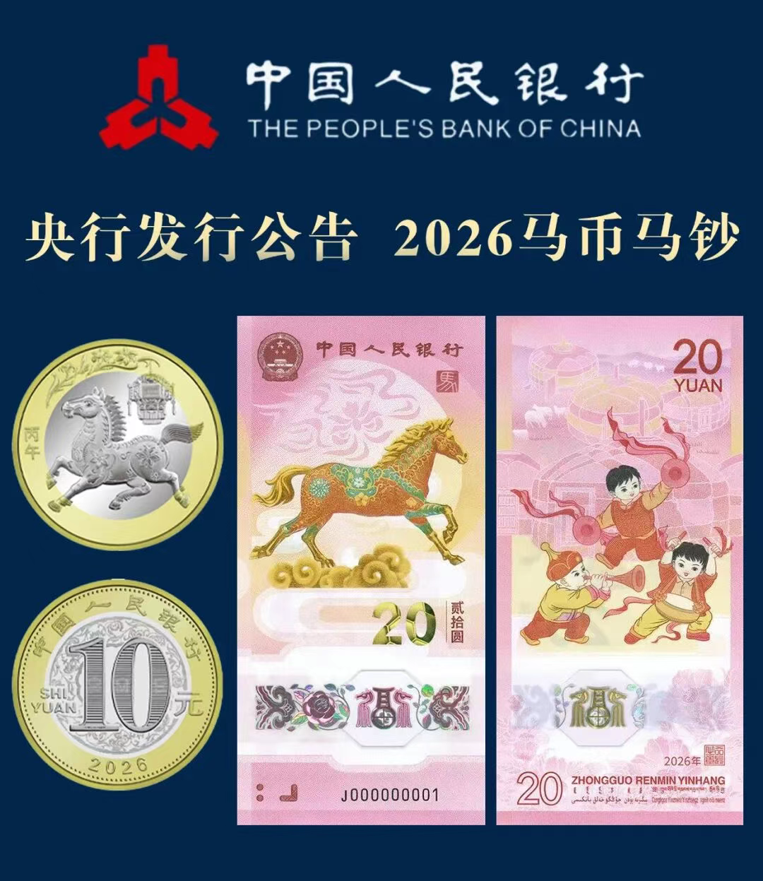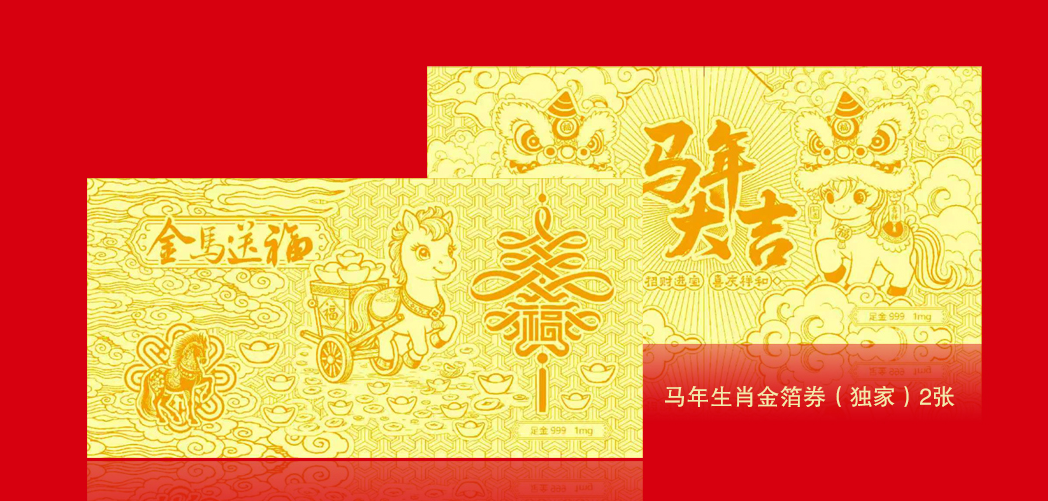 春节不打烊【金马送福·马年生肖大全套】,马年王炸,马钞,马币,邮票一起抢,还赠送您足金999马上有钱摆台! 一次把2026“邮币钞”硬通货打包到家,