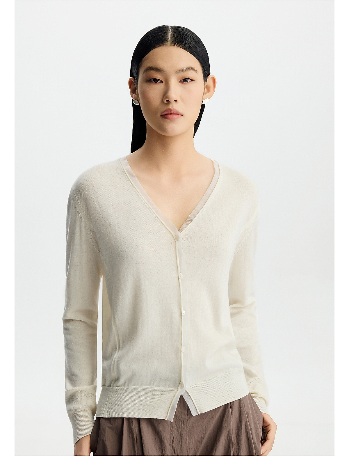 商场同款PURE TOUCH女装26春夏新款v领针织开衫对襟蕾丝宽松外搭
