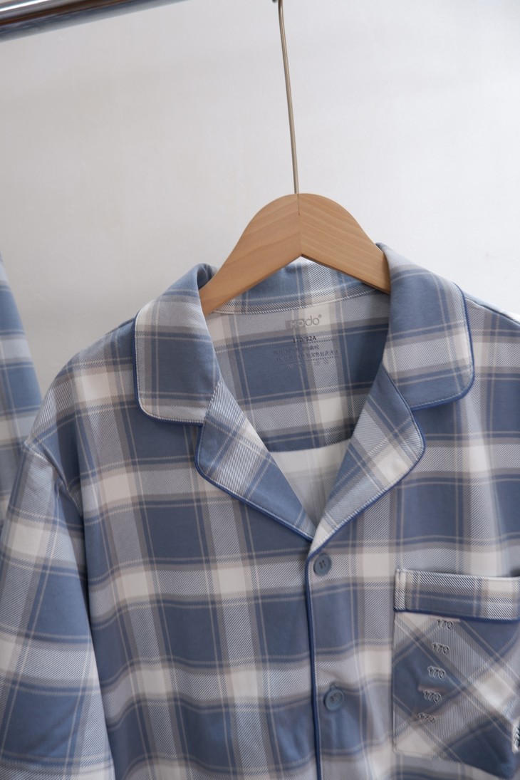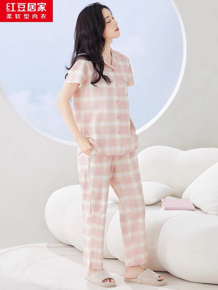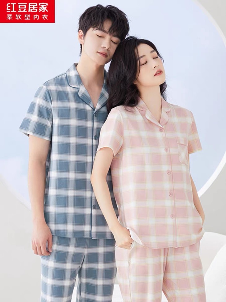 💰75元包邮, 【红豆剪标】短袖情侣格纹睡衣套装 50支干爽棉