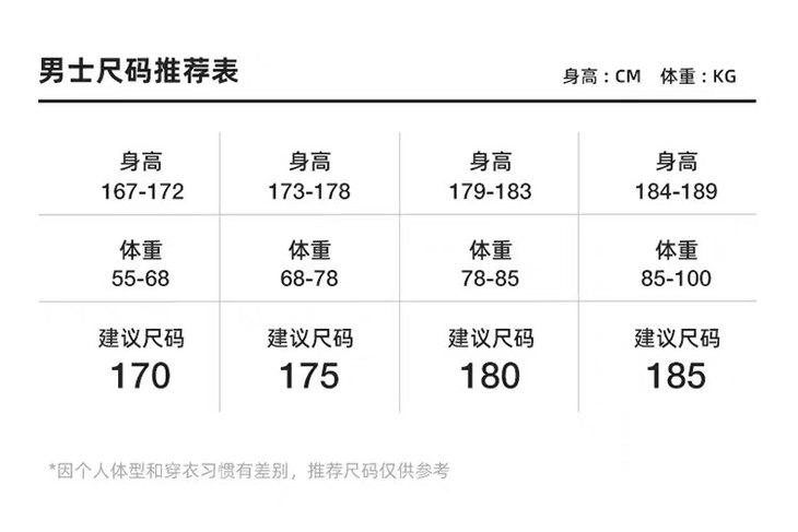 尺码表