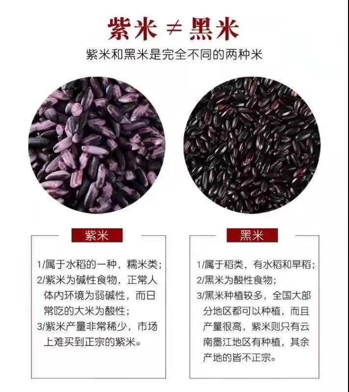 紫米产量有限,售价高,因此市面上也会有不少商家,用黑米替代紫米,或者在紫米里混合黑米欺骗消费者!