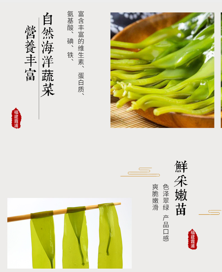 我们挑选的是海带长到40cm左右的海带苗,这个尺寸的海带苗很嫩,宽度也刚好到了有嚼劲的口感,很薄,煮食的话开水烫一下就熟透了,达到了我们常说的3秒即食!