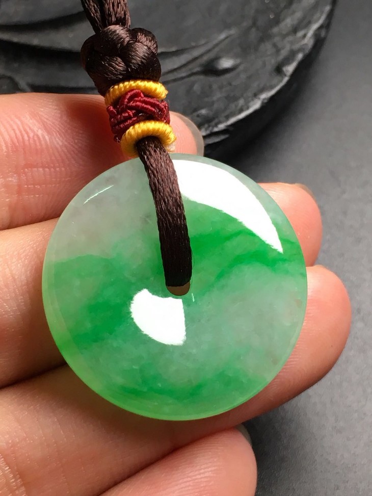 【11725】翡翠冰糯种飘阳绿平安扣,水润光泽,色泽阳绿,造型圆润,飘花犹如青山白云一般,佩戴美观大气,寓意平安有福!裸石尺寸:27.2*5mm,超值价18800