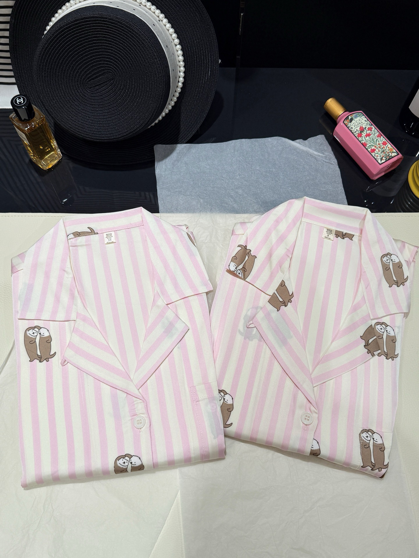 ▫️海獭粉白条-短袖短裤、海獭粉白条-长袖长裤
