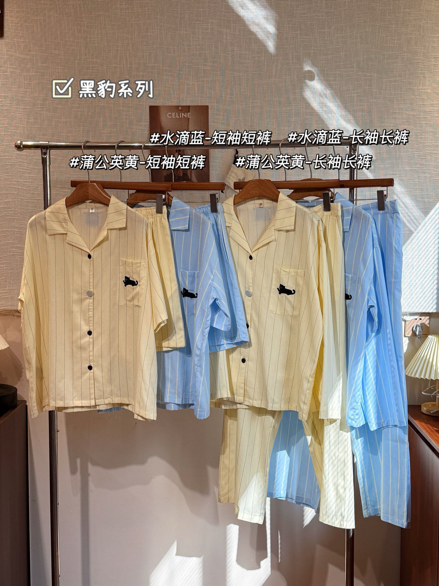 经典条纹设计 简约而不失时尚感 时尚界永恒的宠儿 外加胸前神秘酷炫的黑豹刺绣 宛如夜空中最亮的星 瞬间为睡衣注入了独特的灵魂 这个系列不需要啰嗦 明星爆款 和对象一起安排!!