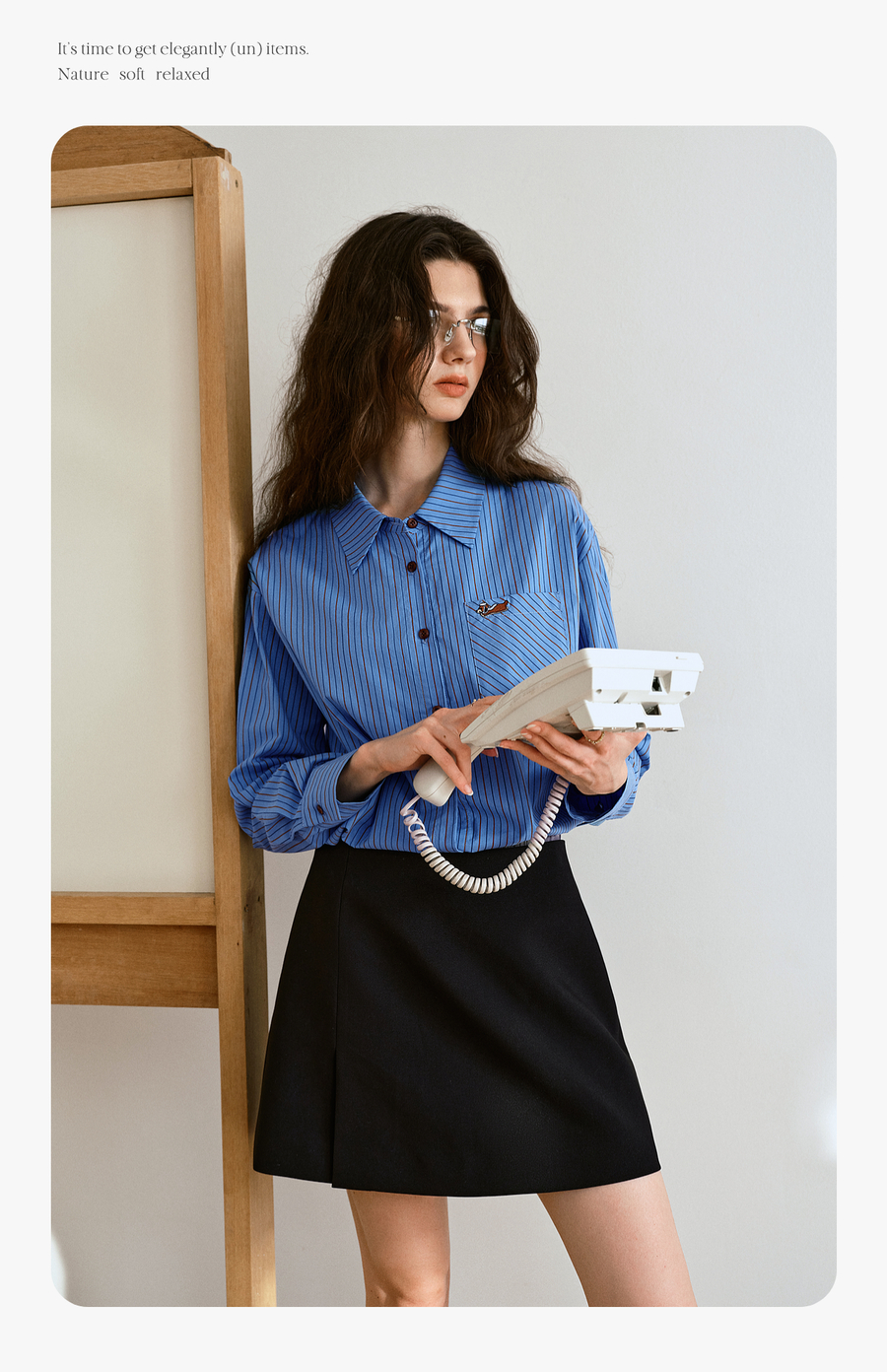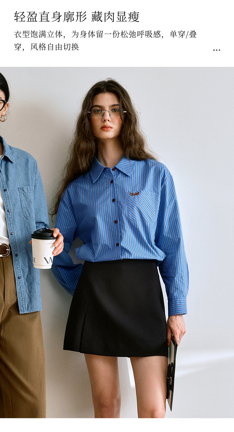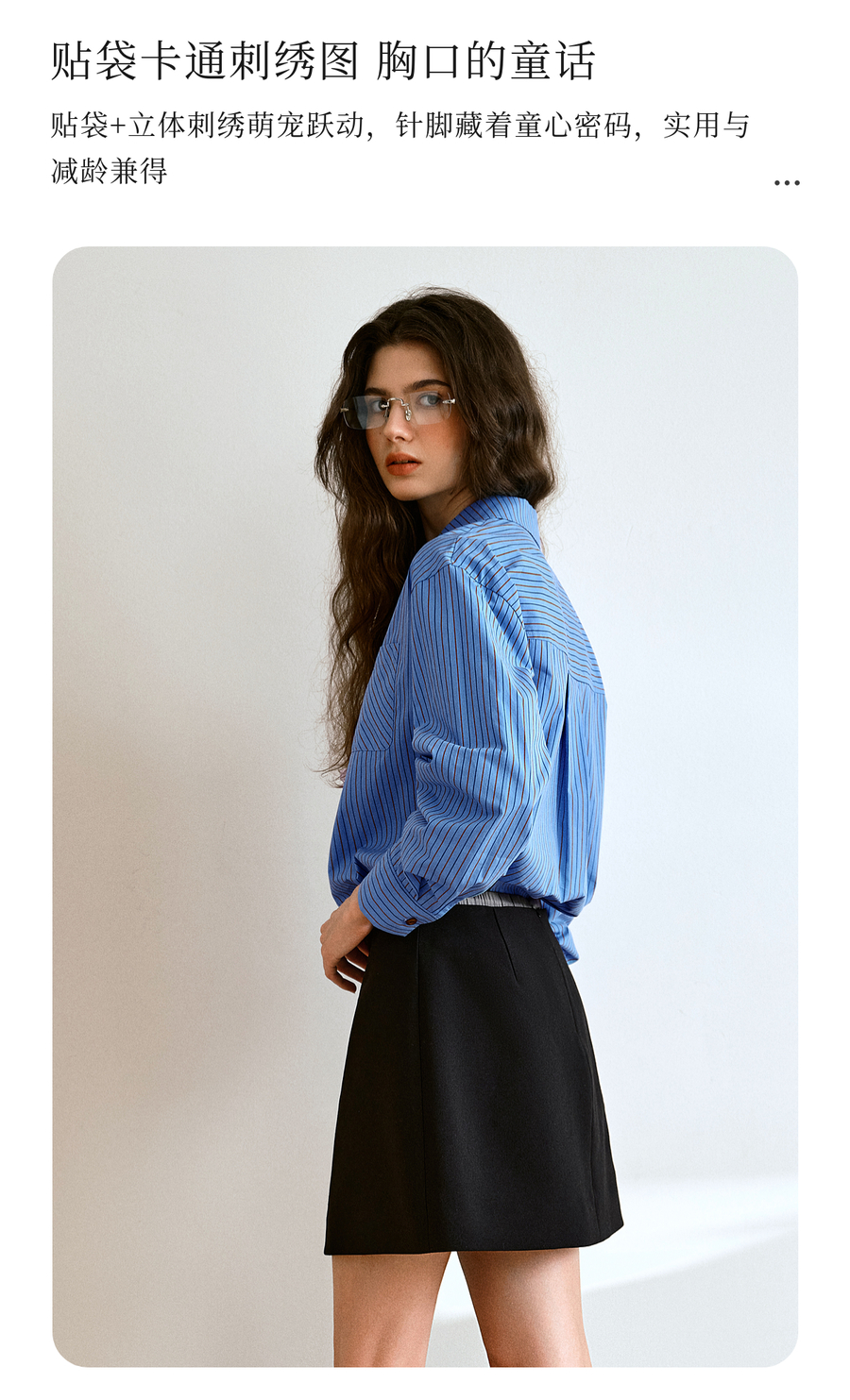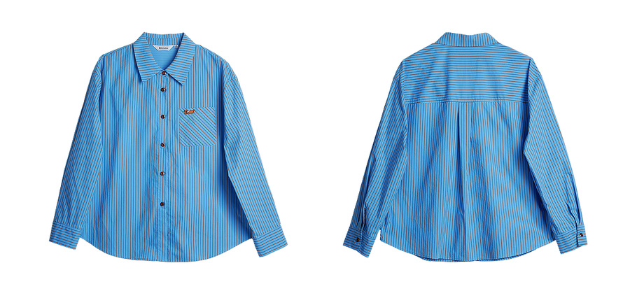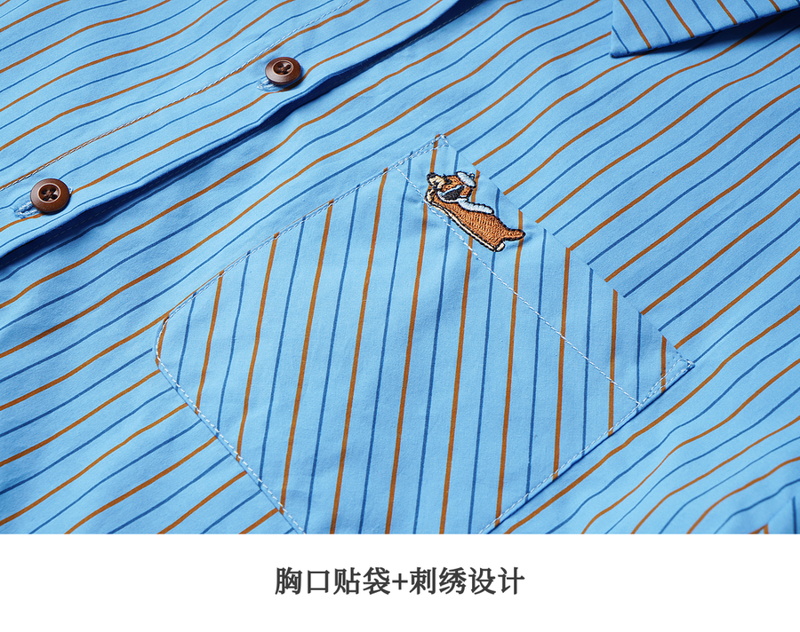 OLrain欧芮儿2025新款女秋季复古通勤蓝色条纹衬衣翻领长袖衬衫