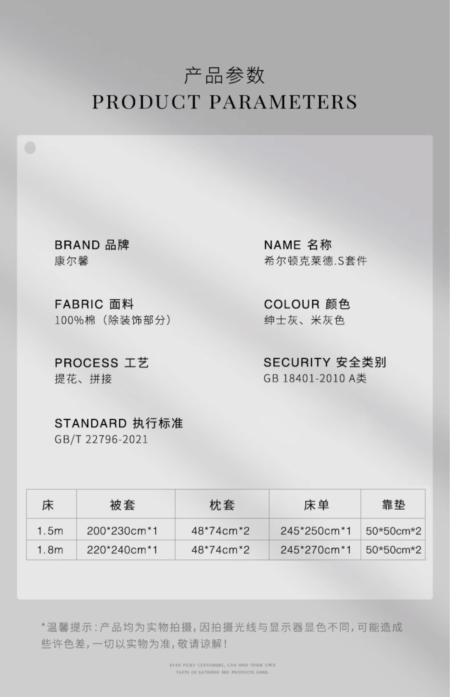- 源自五星级酒店的奢华家纺品牌,康乃馨首次提出打造“酒店+家纺”的全新概念,将更为严格的五星级酒店纺织品品质标准与家纺相结合,完美诠释“酒店品质家纺”的舒适感受与奢华品味。