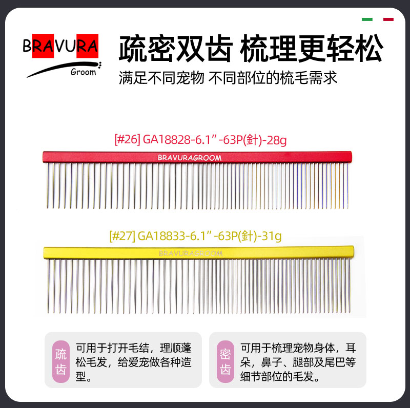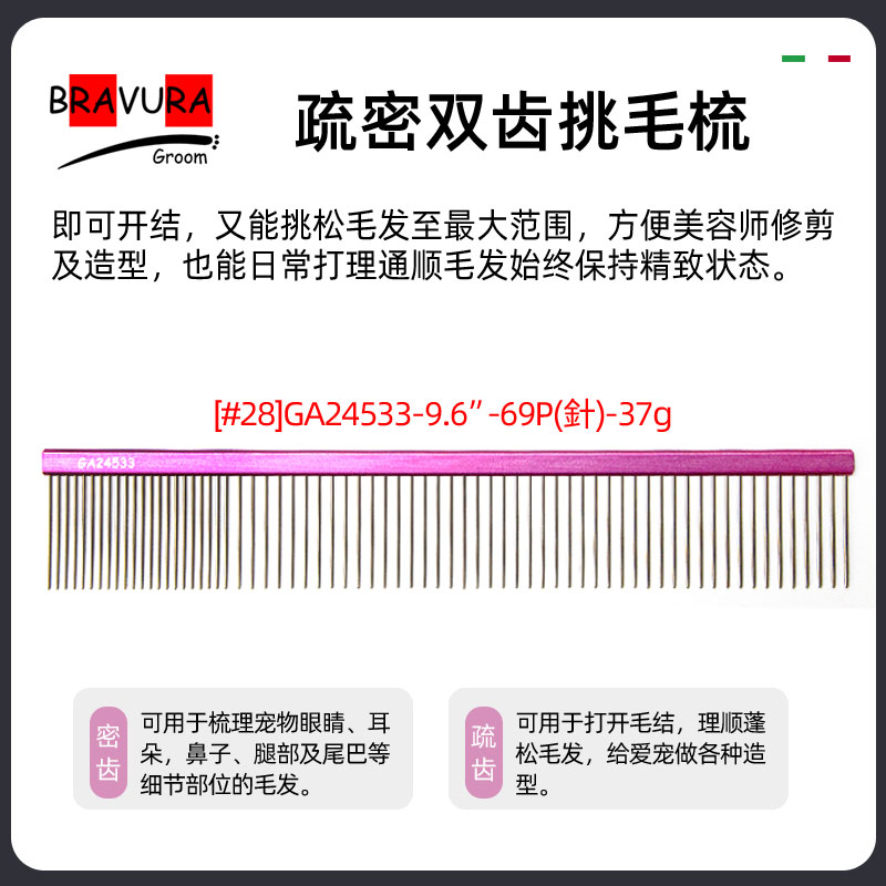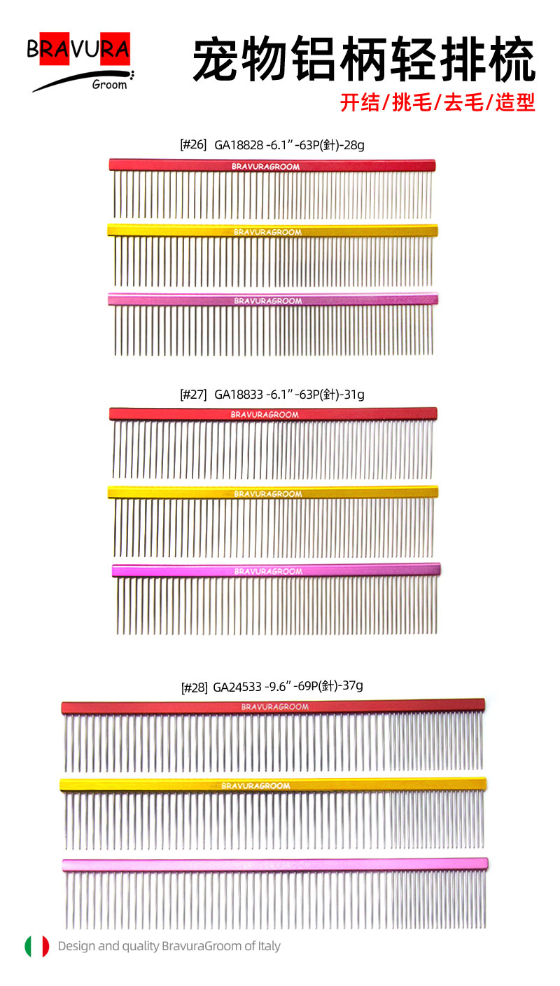 宠物铝柄挑毛梳【#26】【#27】【#28】意大利BRAVURAGROOM