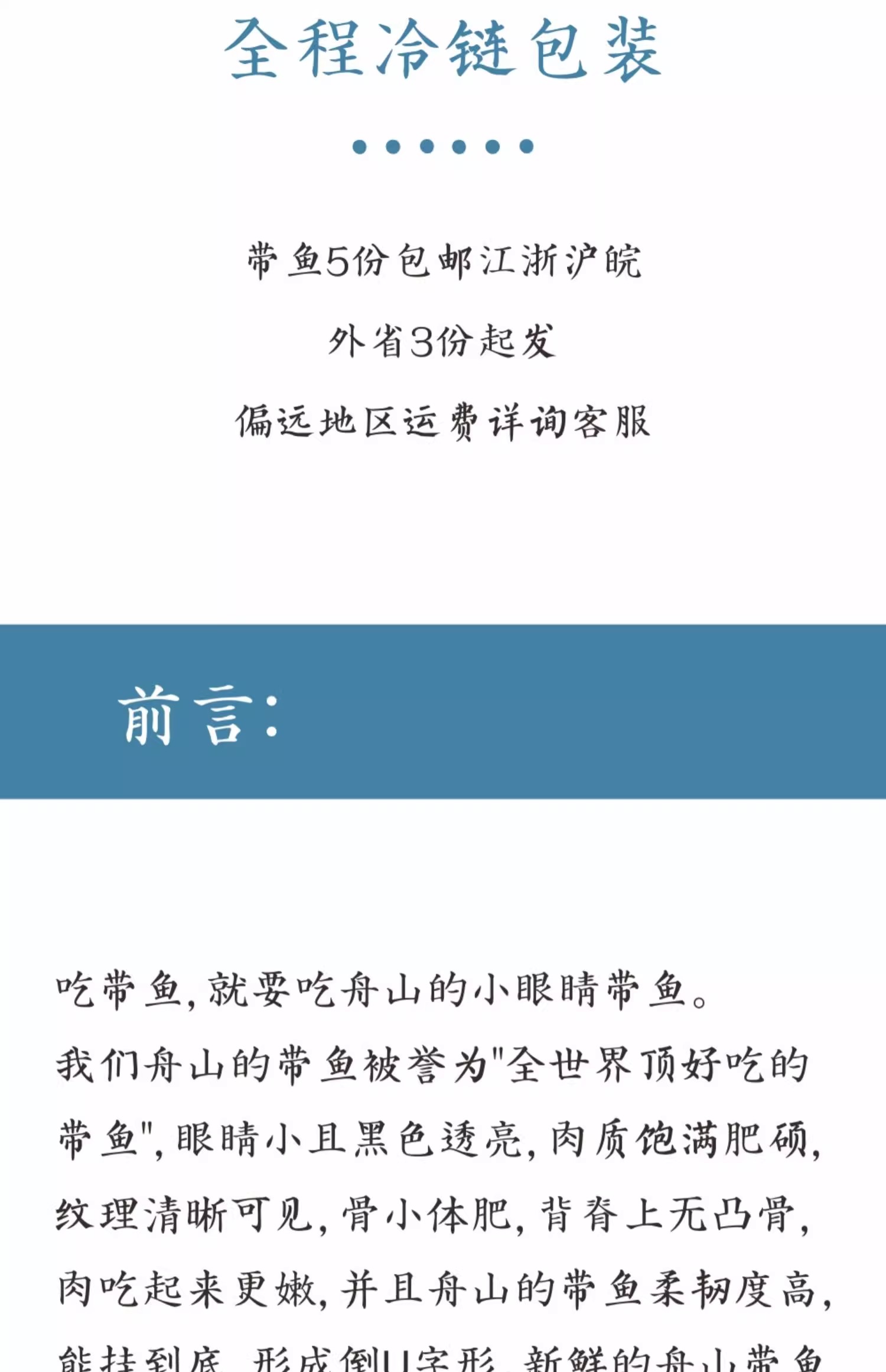 舟山带鱼破肚现象无法避免,若收到后介意破肚的客户,我们提供代杀服务,处理干净以后发出,需要代杀带鱼的客户联系客服备注