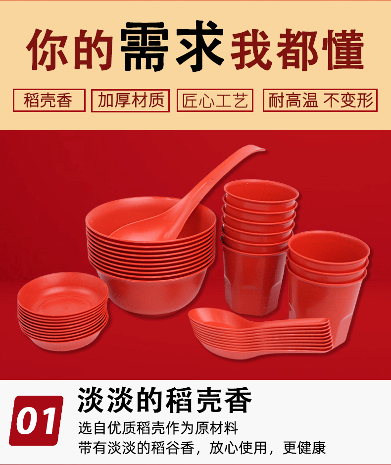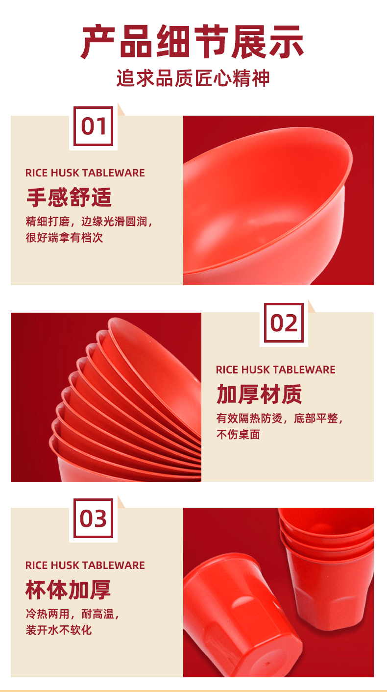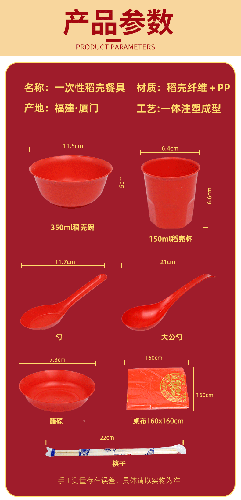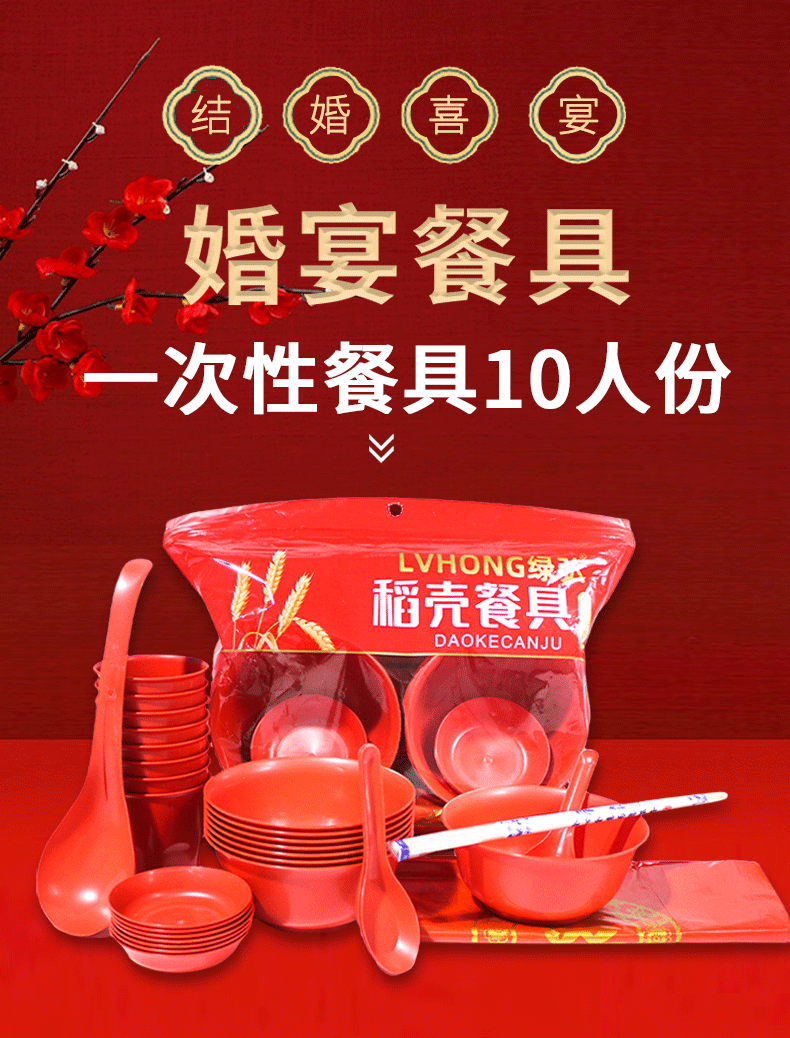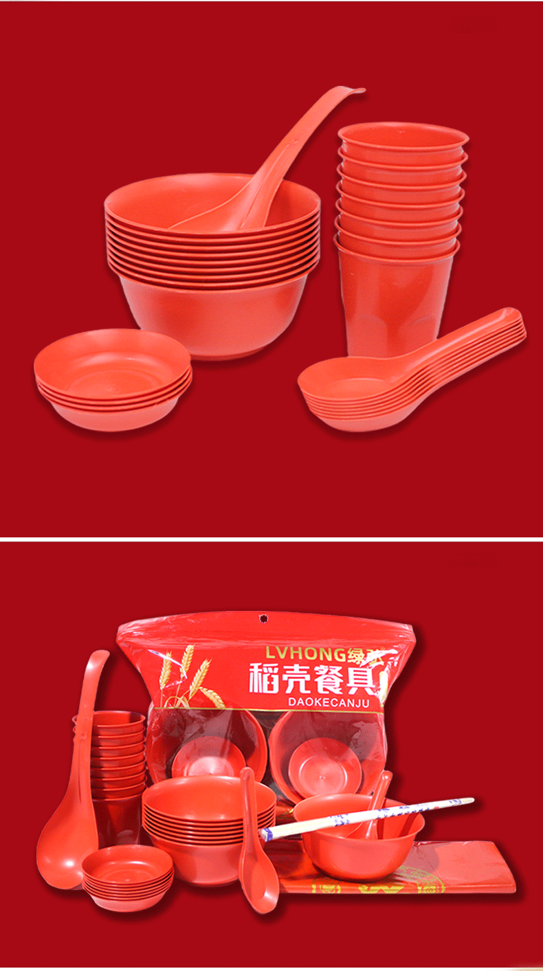 【轻松聚餐❗️一次性餐具碗筷套装】动动筷子,好运齐聚,稻壳套装,可降解,健康卫生!10人份红色酒席用的质量好红碗结婚商用