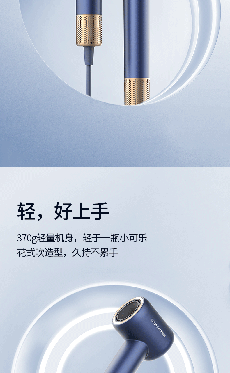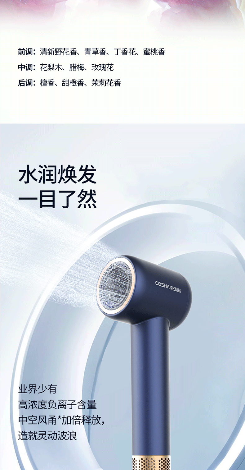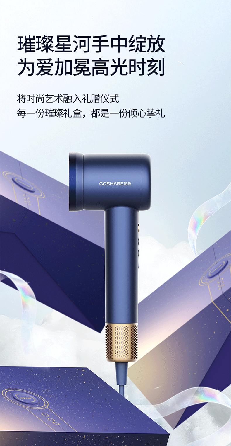 COSHARE 酷鲨护发高速吹风机 HD10礼盒装家用 大功率8亿负离子除静电头发不毛躁中空无叶电吹风送女友礼盒装 节日送礼 群青蓝礼盒装