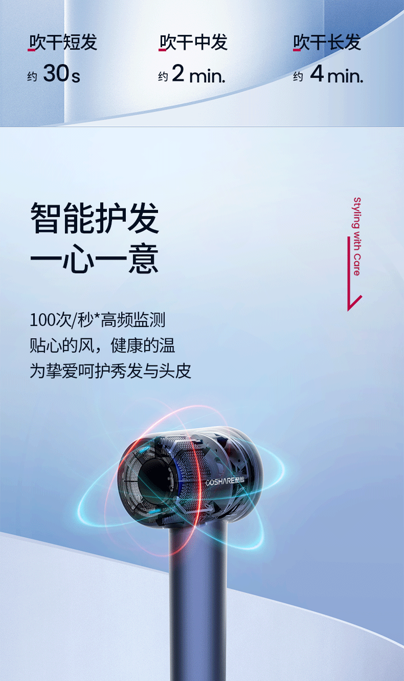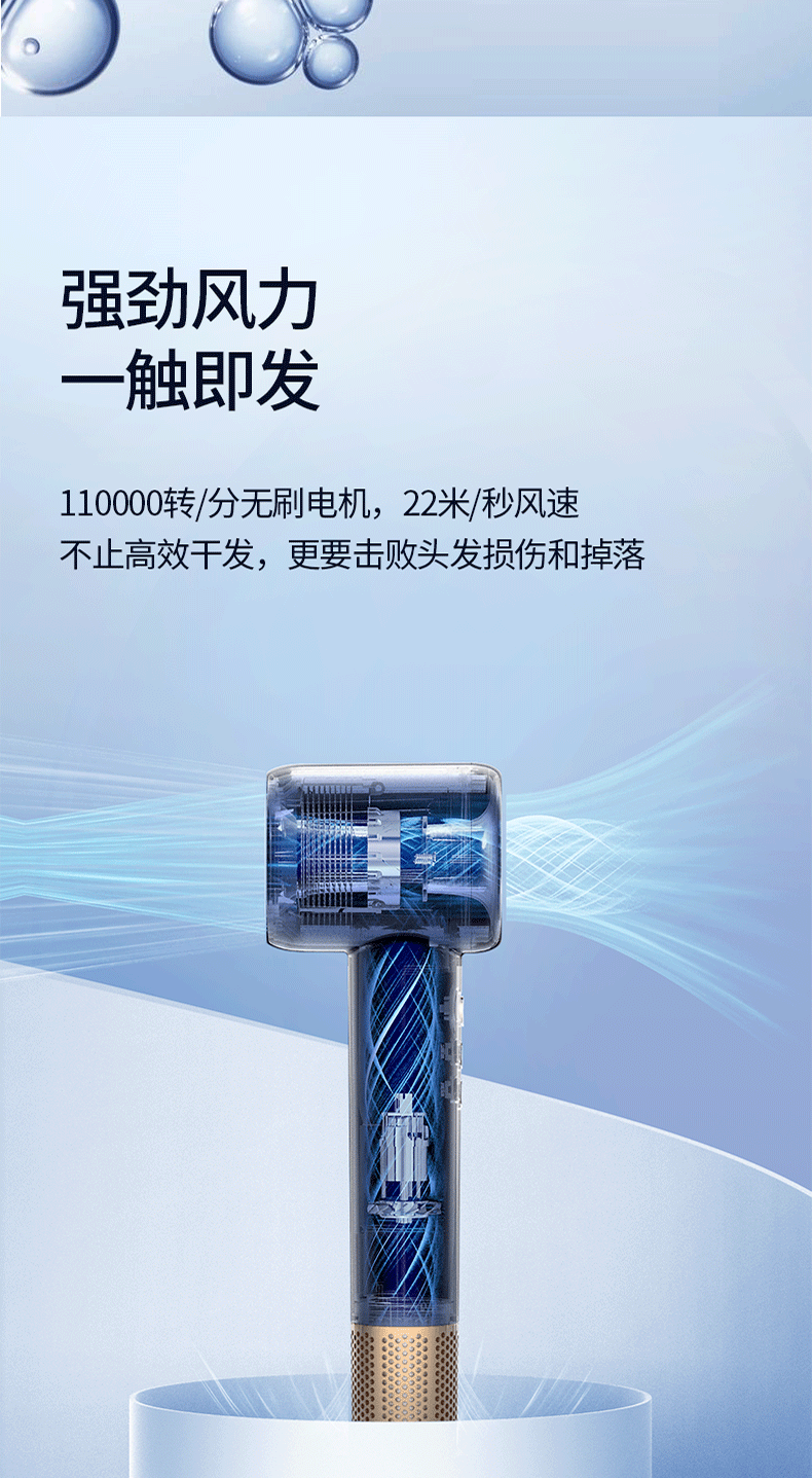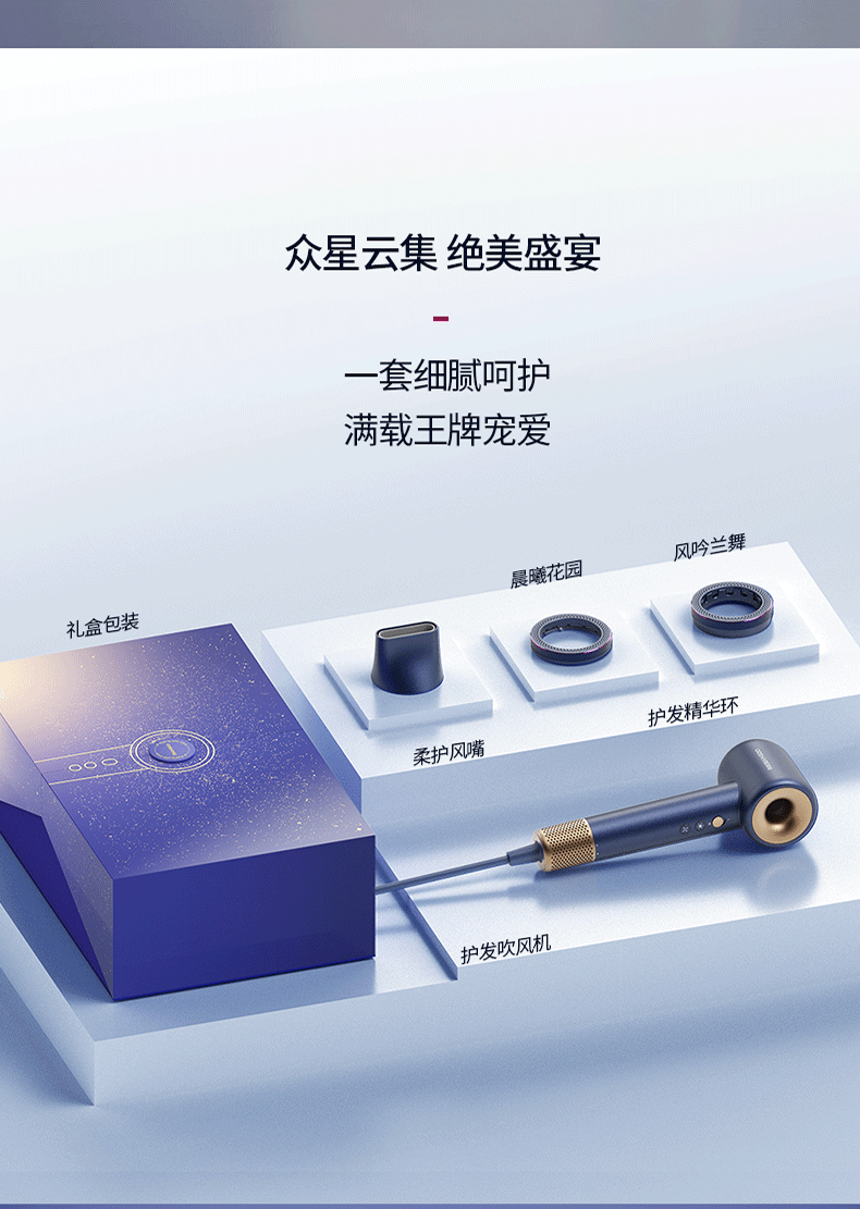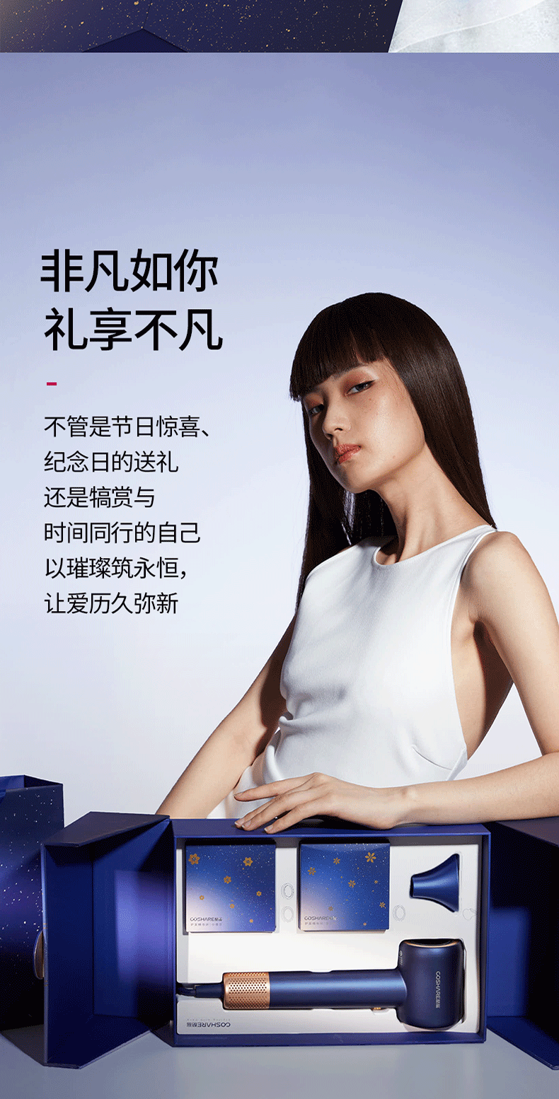 COSHARE 酷鲨护发高速吹风机 HD10礼盒装家用 大功率8亿负离子除静电头发不毛躁中空无叶电吹风送女友礼盒装 节日送礼 群青蓝礼盒装