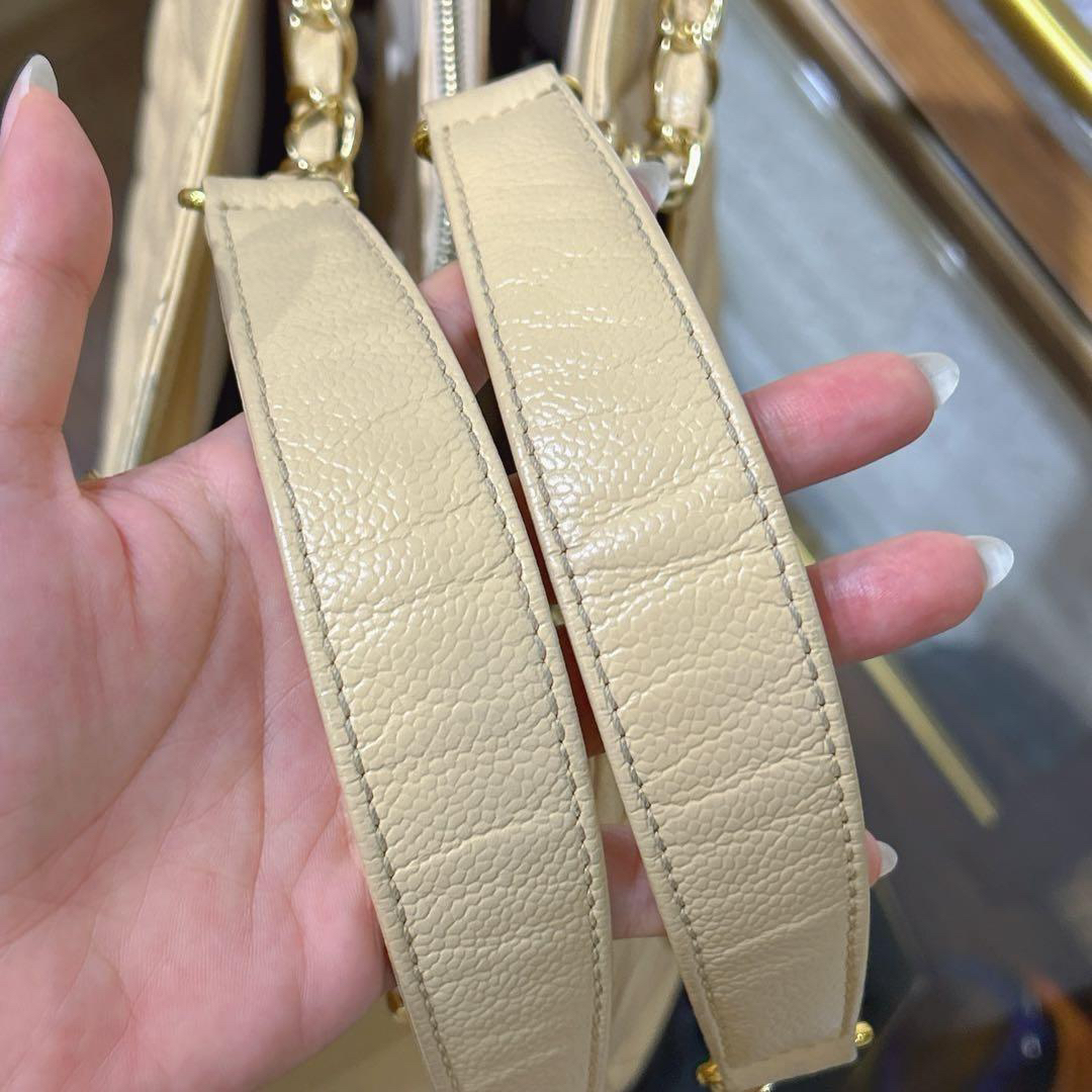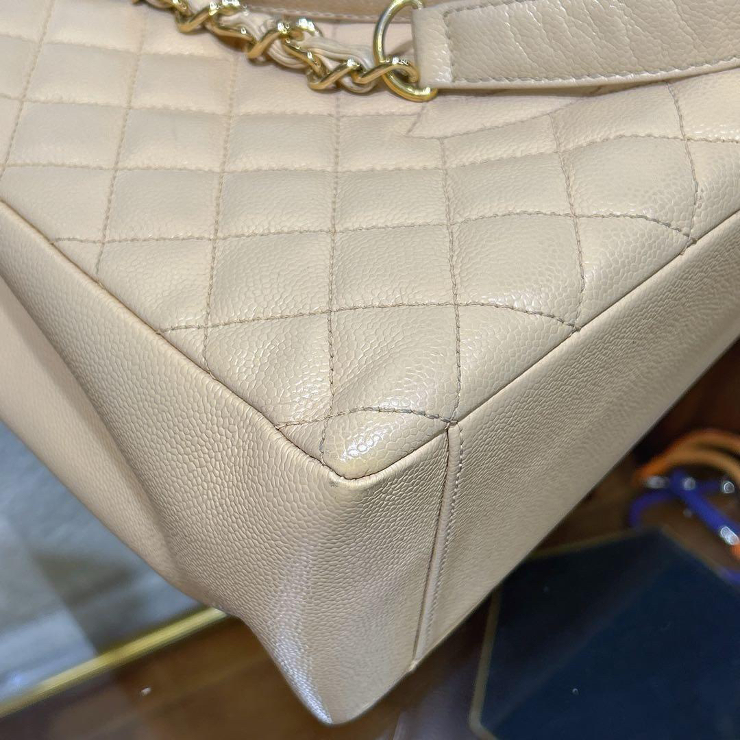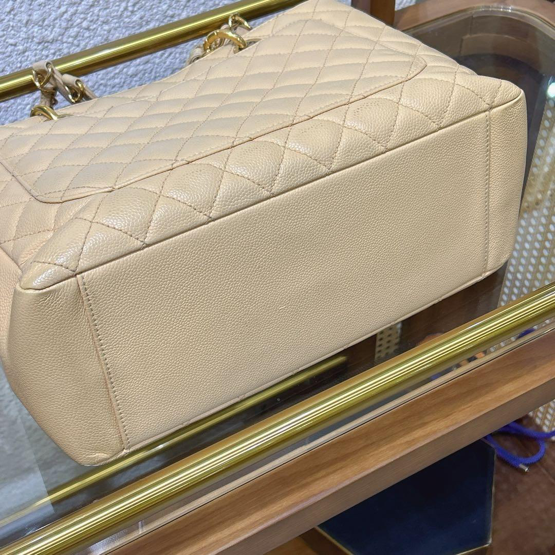 【商品詳情】正品二手 Chanel GST 荔枝纹牛皮 奶茶金 购物袋 🎊95新 34*24 镭射18开 配件:卡 说明书盒子。包口正常使用感。经典耐用能装!