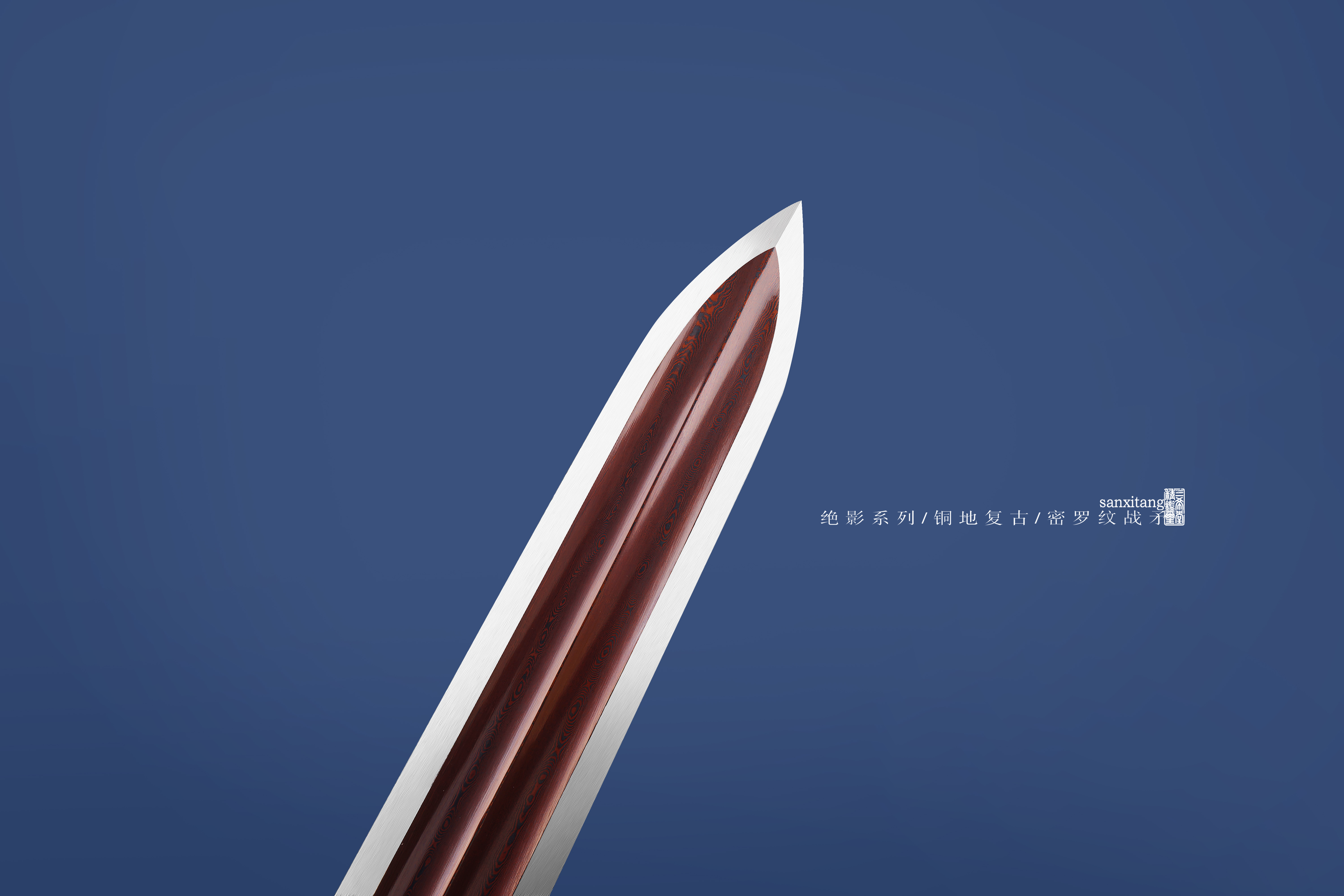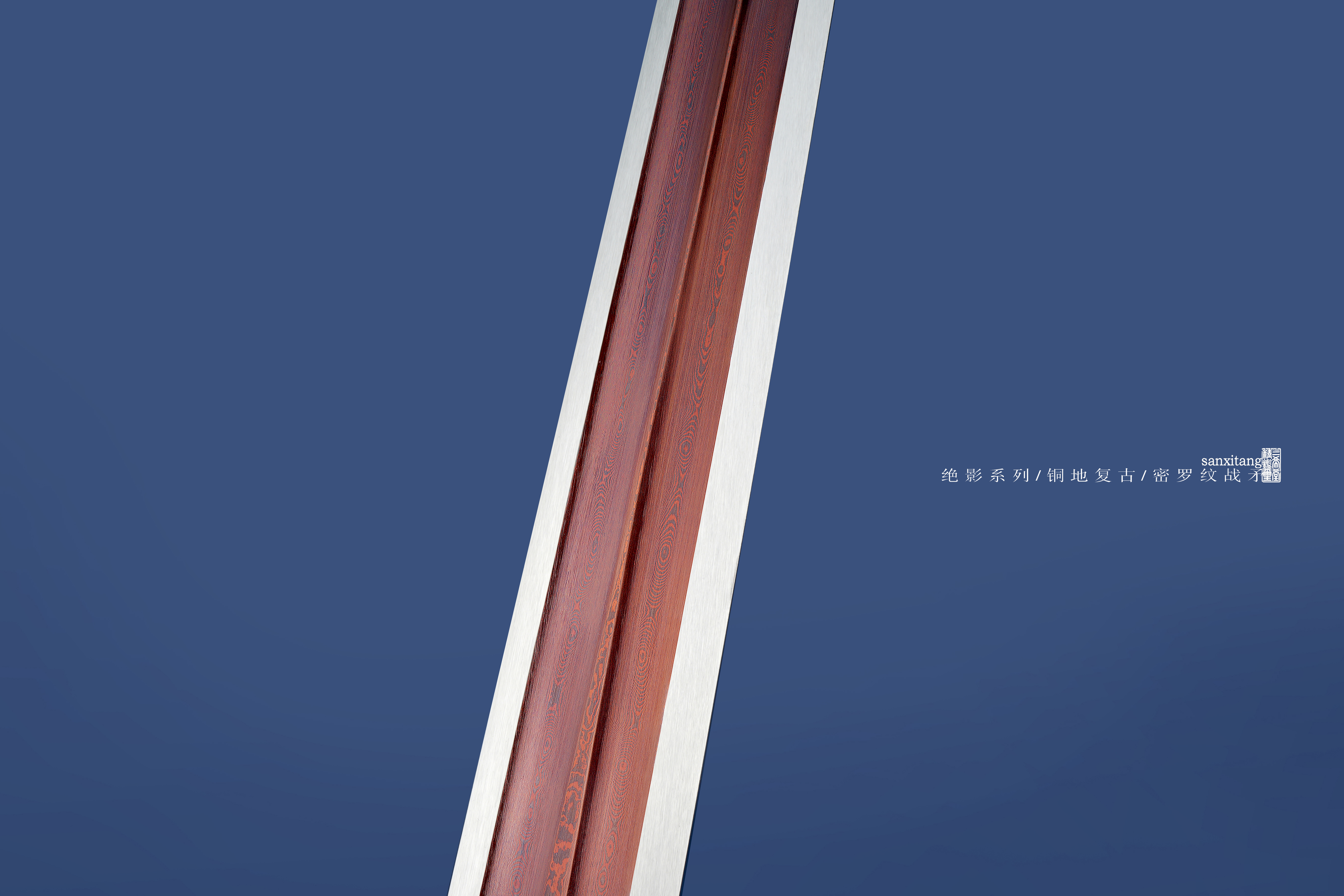 高配版战矛 尺寸和原来一样 全长110 做了个高配版本 锻打层数增加了一倍 4000余层手工锻打 双槽发红处理 非常帅 手工研磨等级提高 棱线感加强了 表面更干净更明亮一些 手柄处加了两节珍珠鱼皮 手感会更好一些 这只国外零售价都是6000+ 我们自己锻打的百炼钢 造型也是特别制作的 手工磨的双槽型制非常好看 而且开了槽的作品重心会比普通的好很多 全套的铜地复古金具 回转纹路 整根的黑檀木 比乌木版本好很多 性能非常稳定 柄上缠麻绳 平时练习或者摆放都非常合适 送朋友当礼物也是极好的