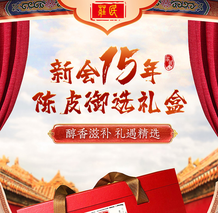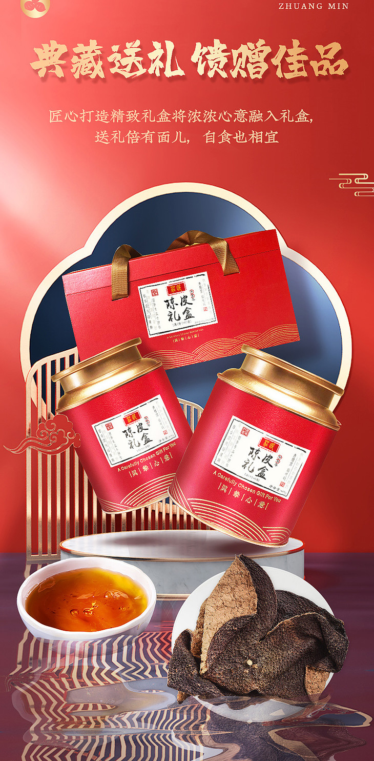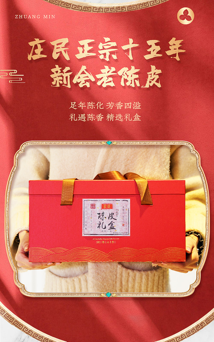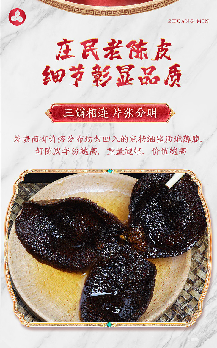 庄民 陈皮 15年广东新会老陈皮干新年年货春节礼品盒装 正宗十五年大红皮陈皮优字号138g 陈皮块花草茶叶泡水