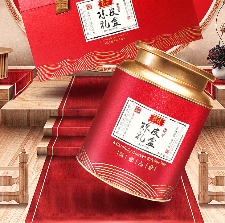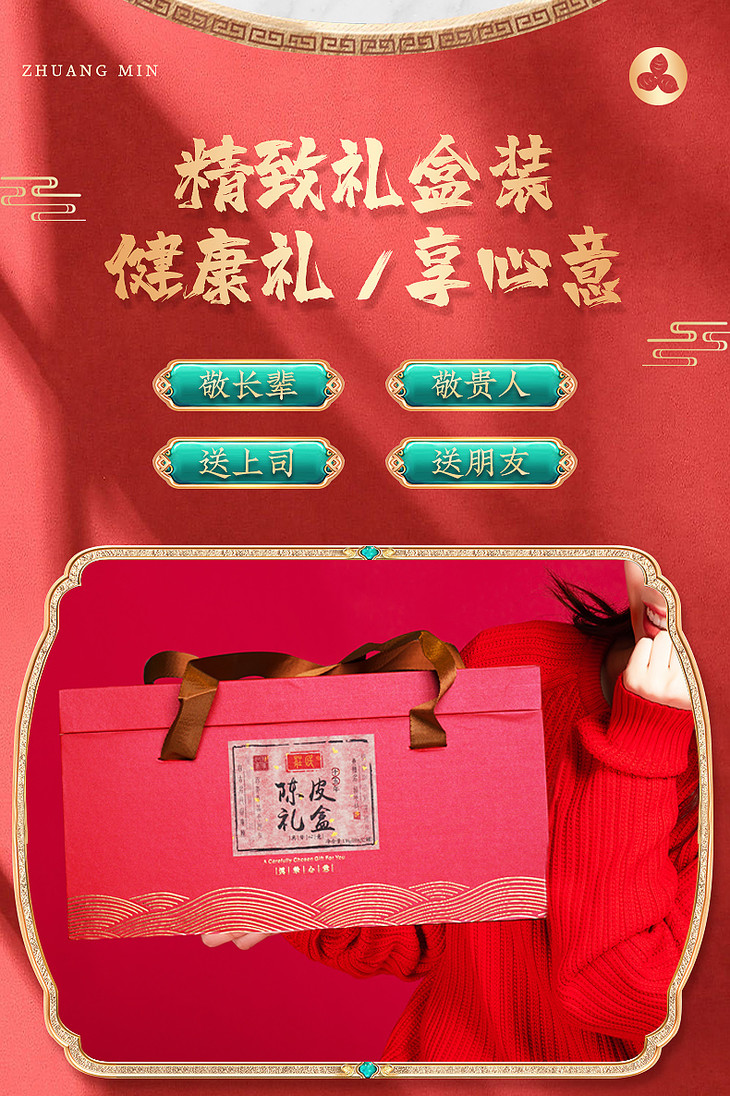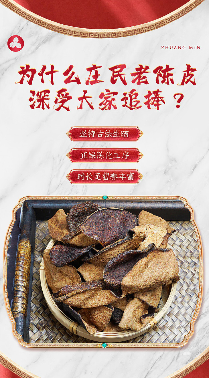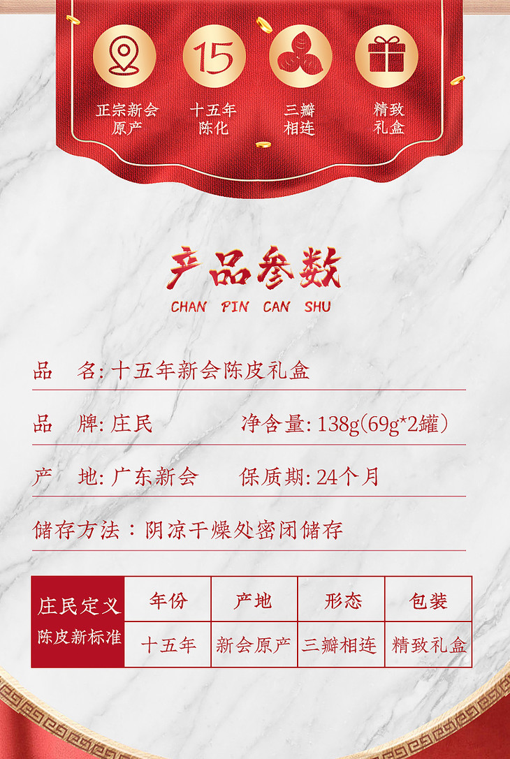 庄民 陈皮 15年广东新会老陈皮干新年年货春节礼品盒装 正宗十五年大红皮陈皮优字号138g 陈皮块花草茶叶泡水