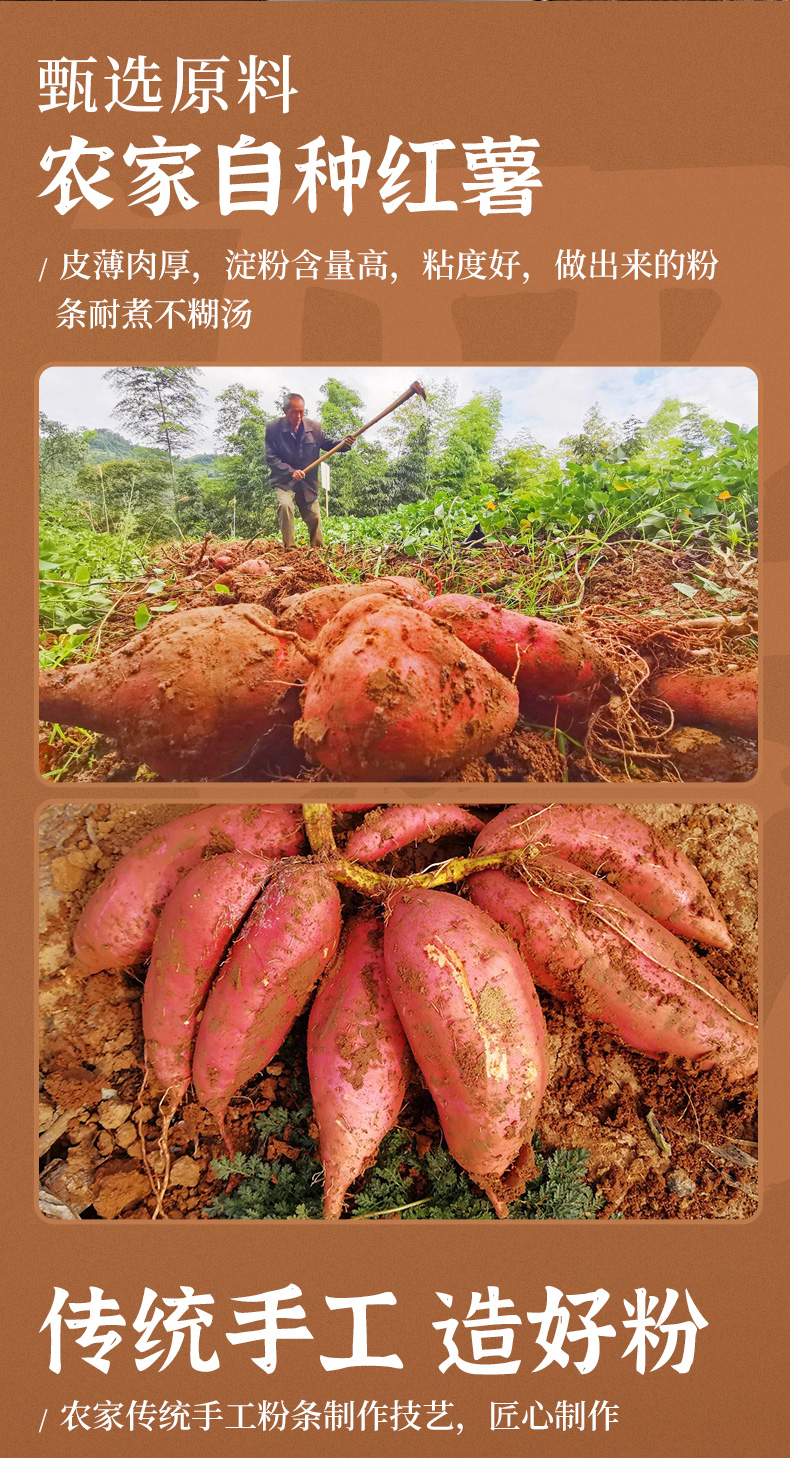 【2斤装】农家传统自制红薯粉丝、正宗红薯粉条、4包装细粉丝、250g/包