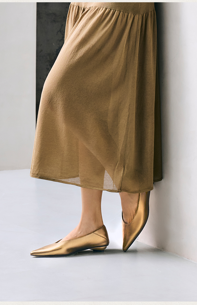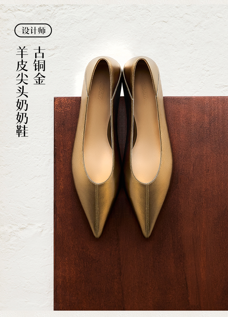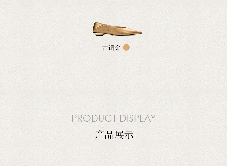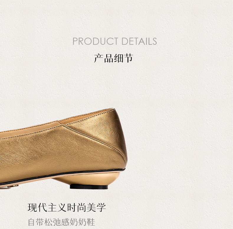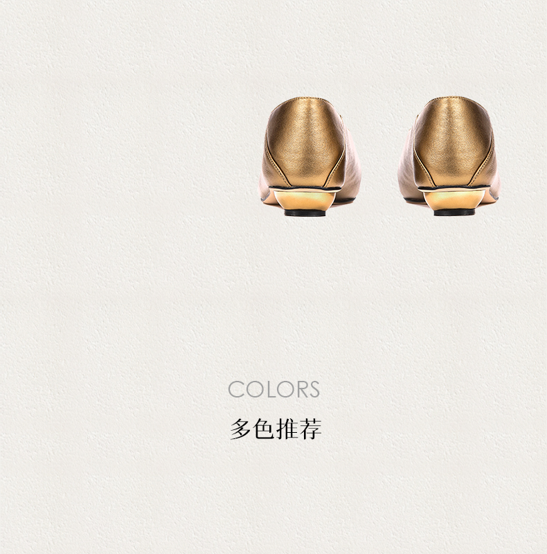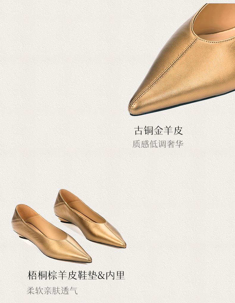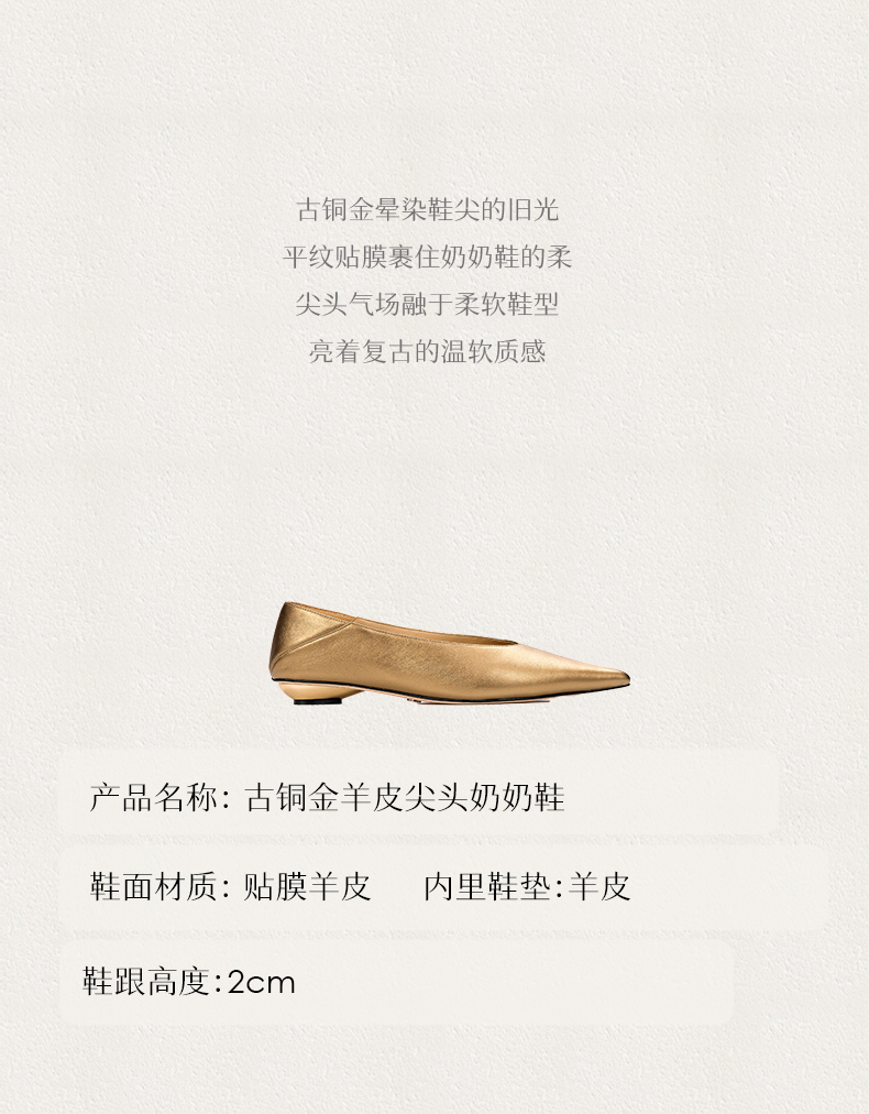 heelz设计师手工鞋履 |古铜金羊皮尖头平底奶奶鞋2公分