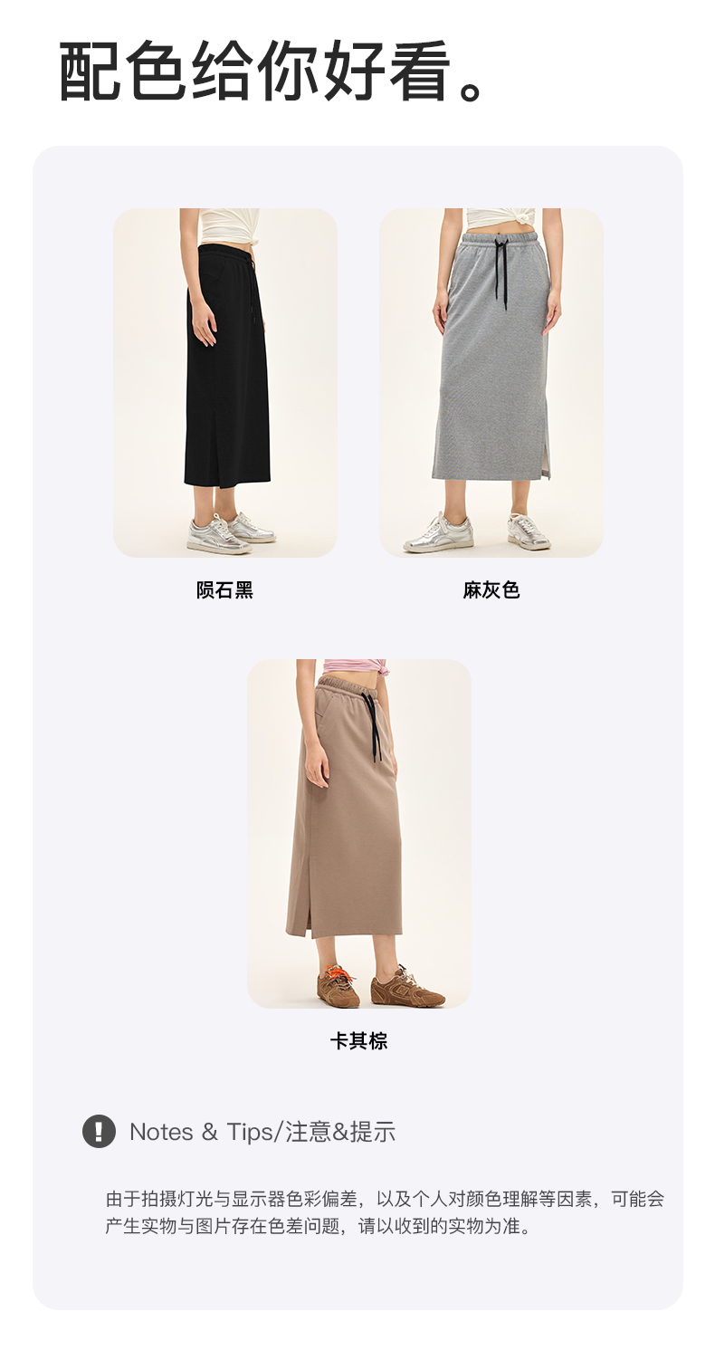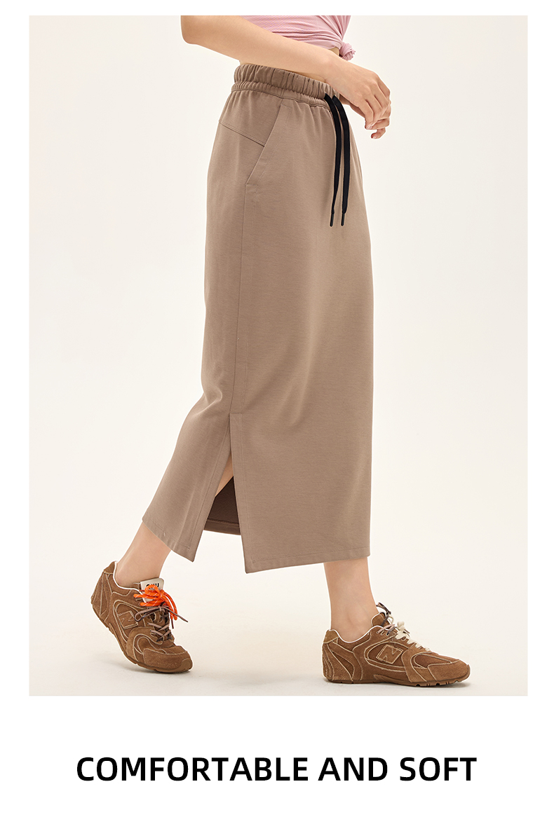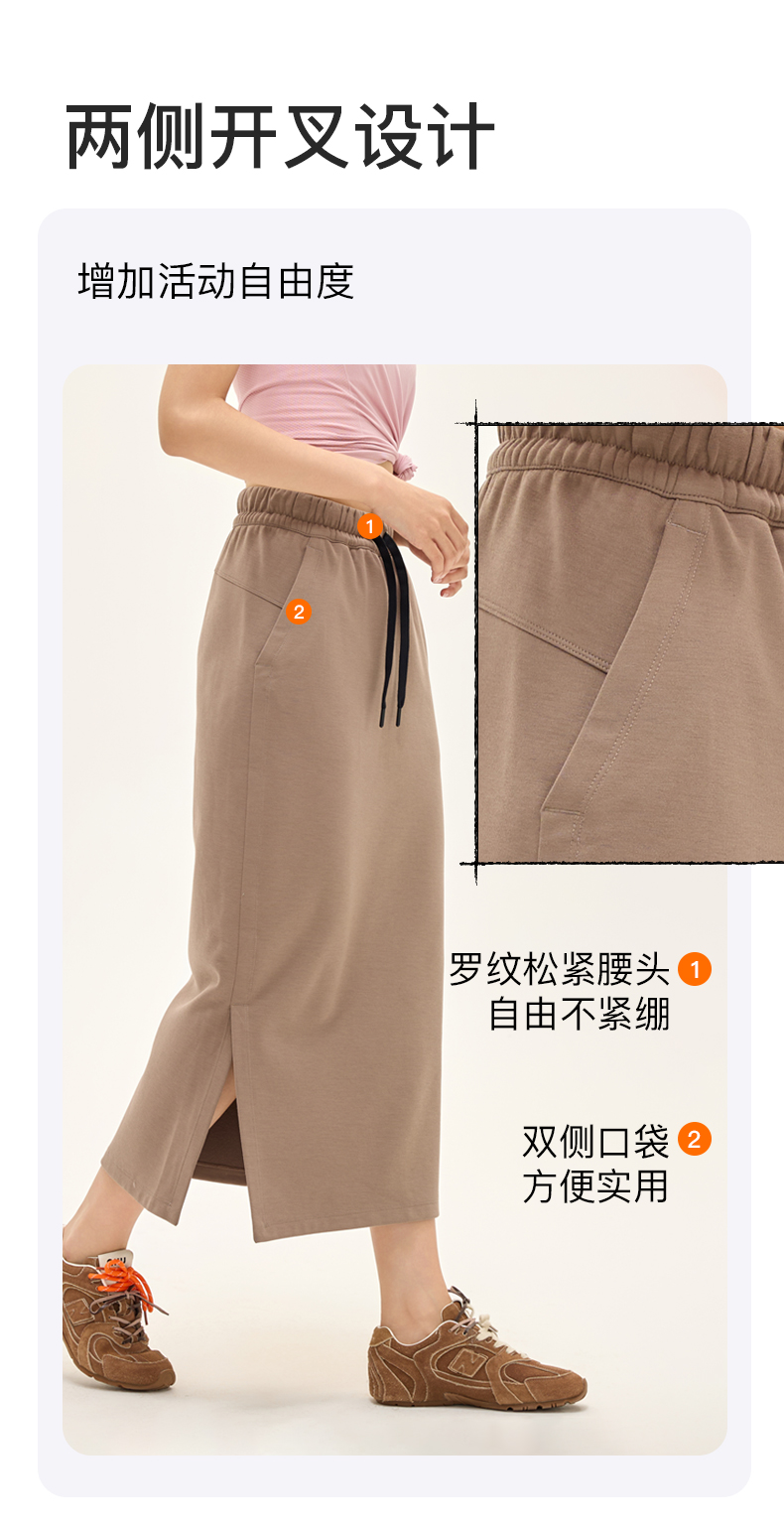 Leorrey乐拉双侧口袋时尚百搭收腰直筒版型柔软运动休闲半身卫裙DQ7371