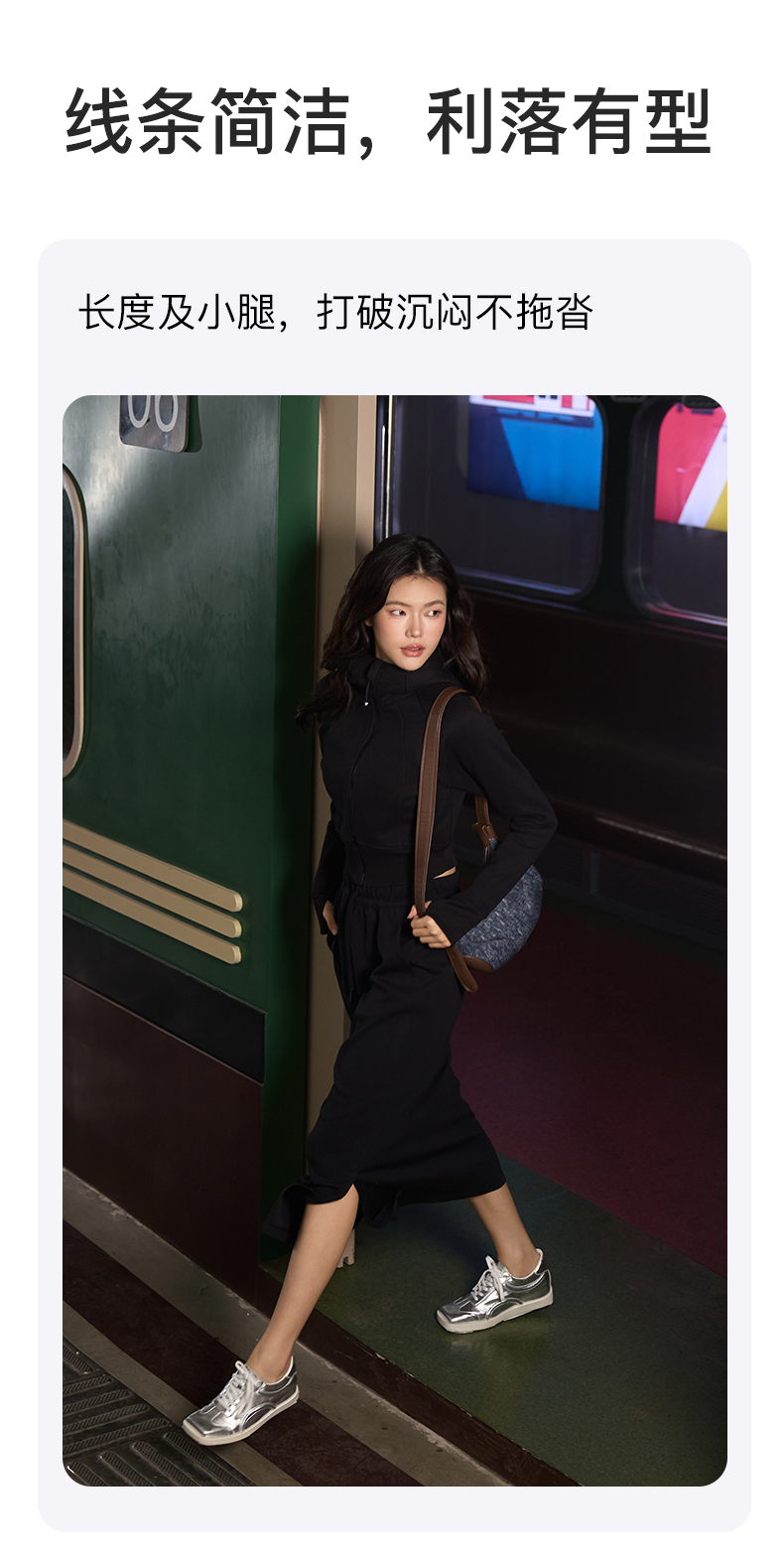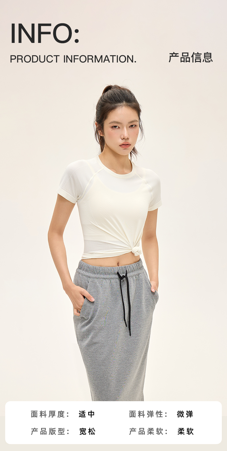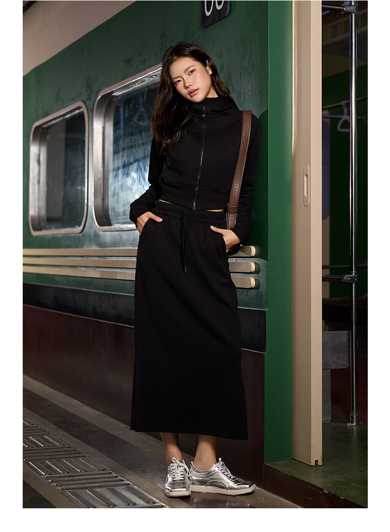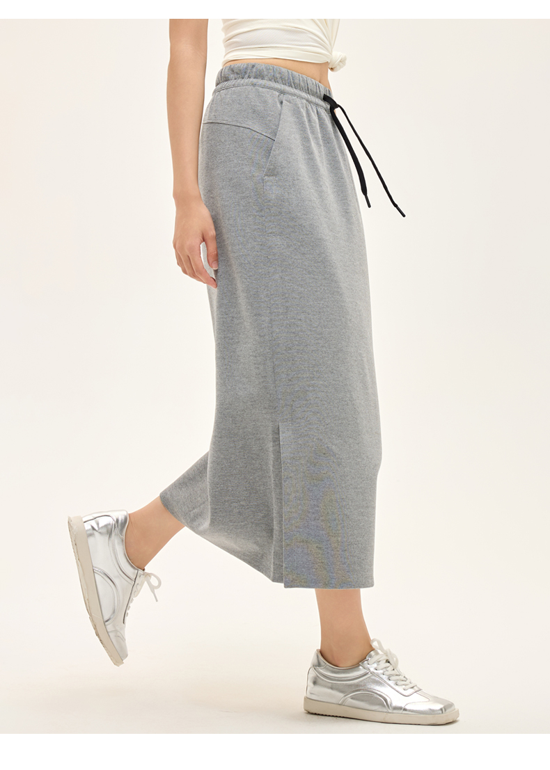 Leorrey乐拉双侧口袋时尚百搭收腰直筒版型柔软运动休闲半身卫裙DQ7371