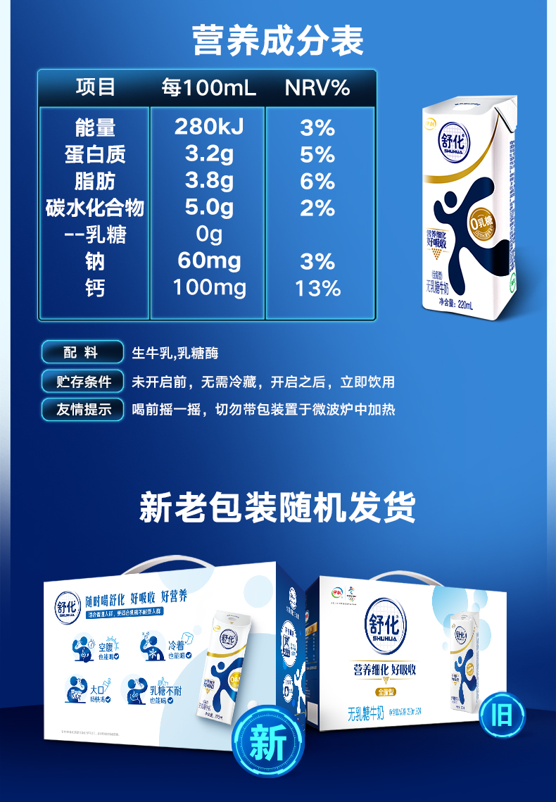伊利 舒化奶 220ml*24盒 无乳糖 好吸收 整箱舒化奶 牛奶 缓解乳糖不耐 甄选牧场 优质奶源