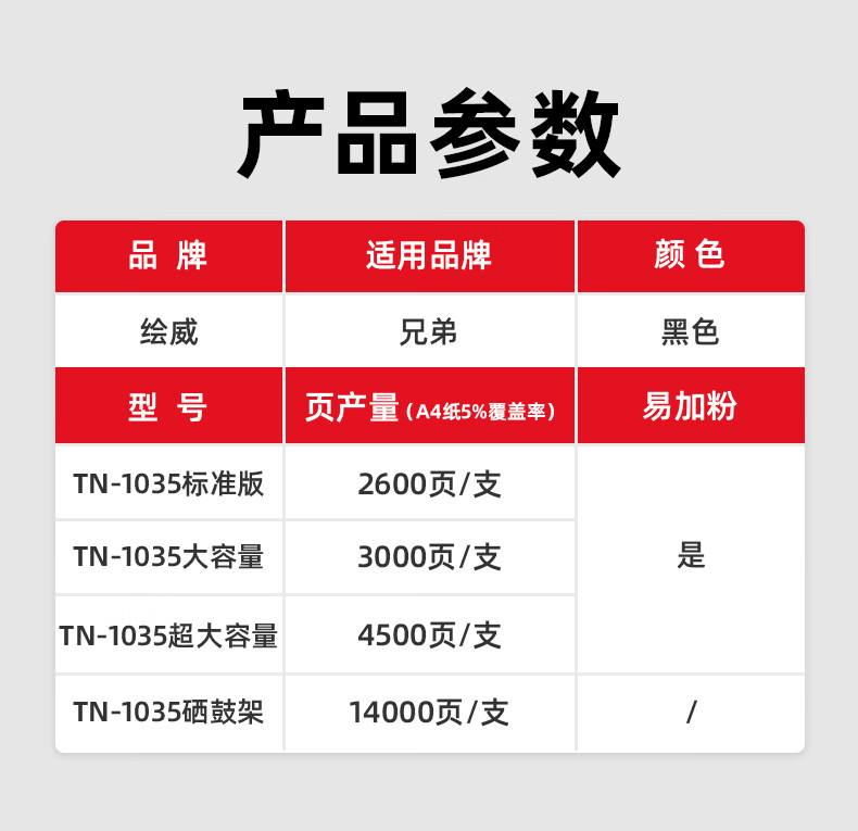 绘威TN1035易加粉粉盒 适用兄弟dcp-1608硒鼓dcp1618W墨盒 mfc1919nw HL1208 1218W 1813 1819 打印机墨粉盒