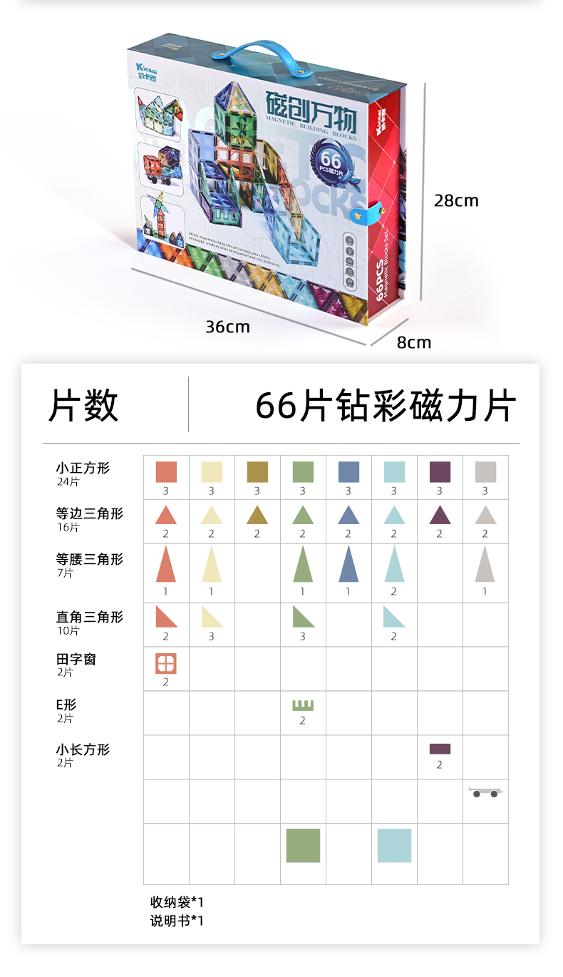 凯卡西儿童磁力片彩窗积木磁力棒男孩女孩拼图益智拼装玩具礼物